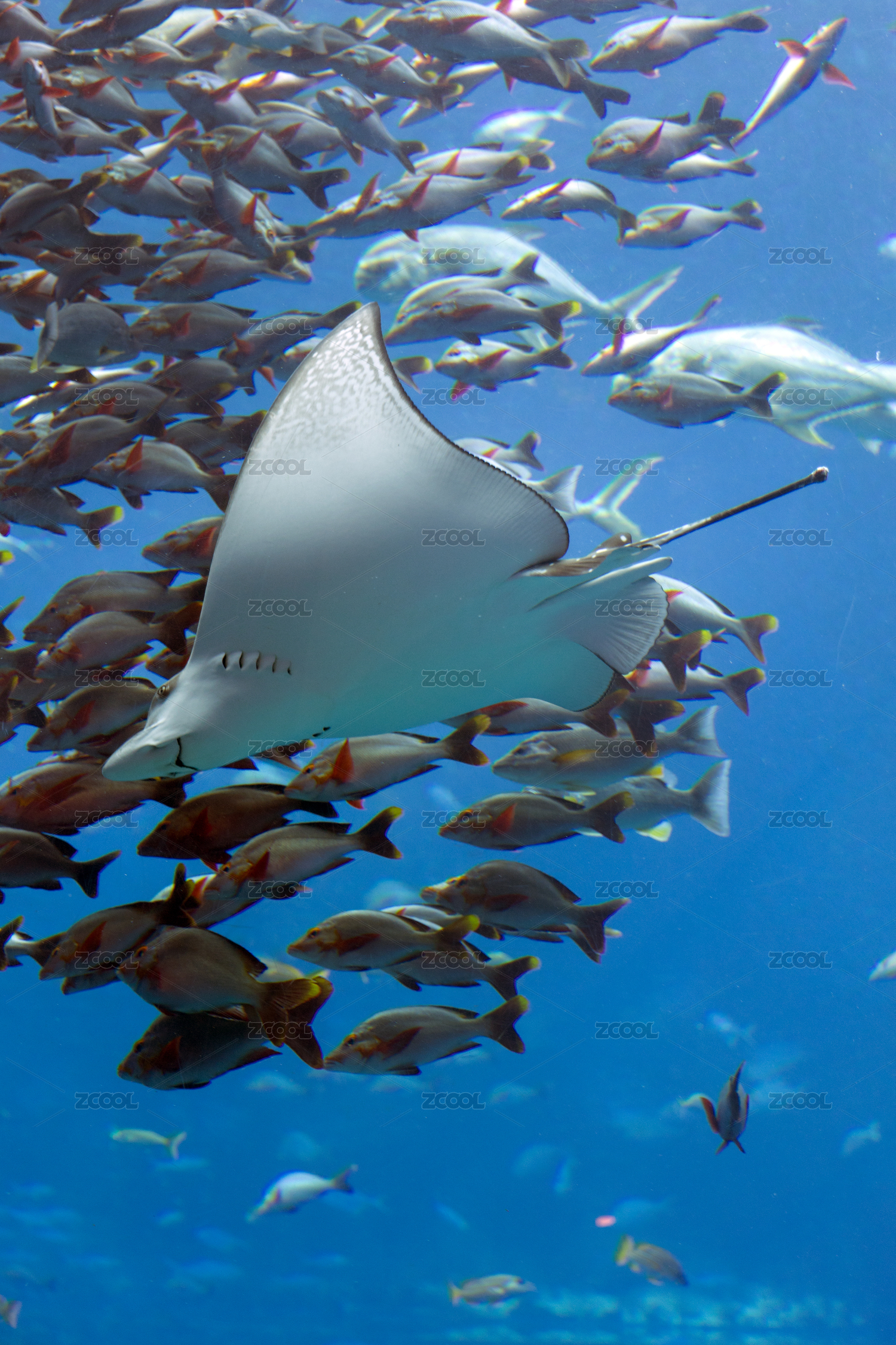 水族館海水中的魚群特寫