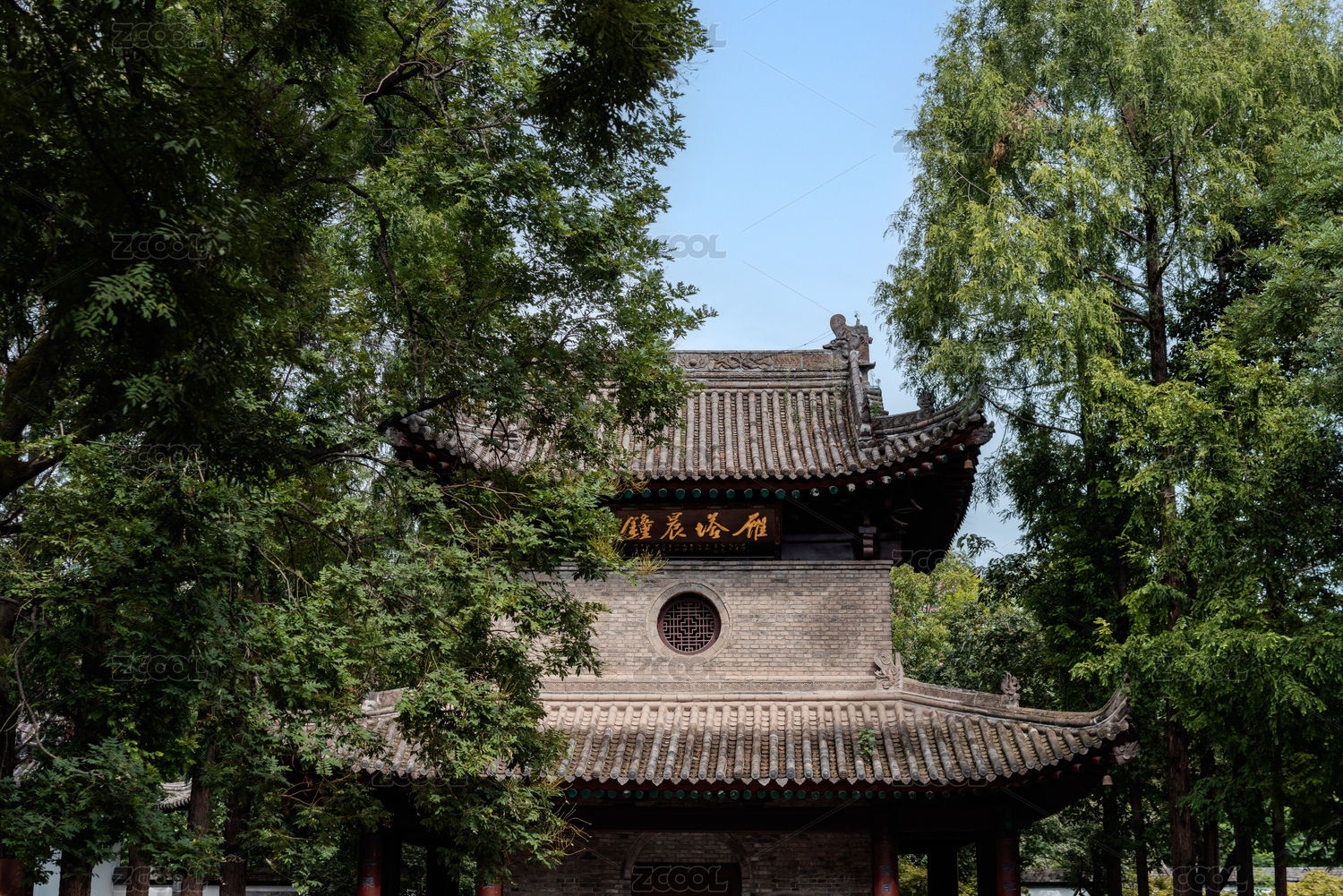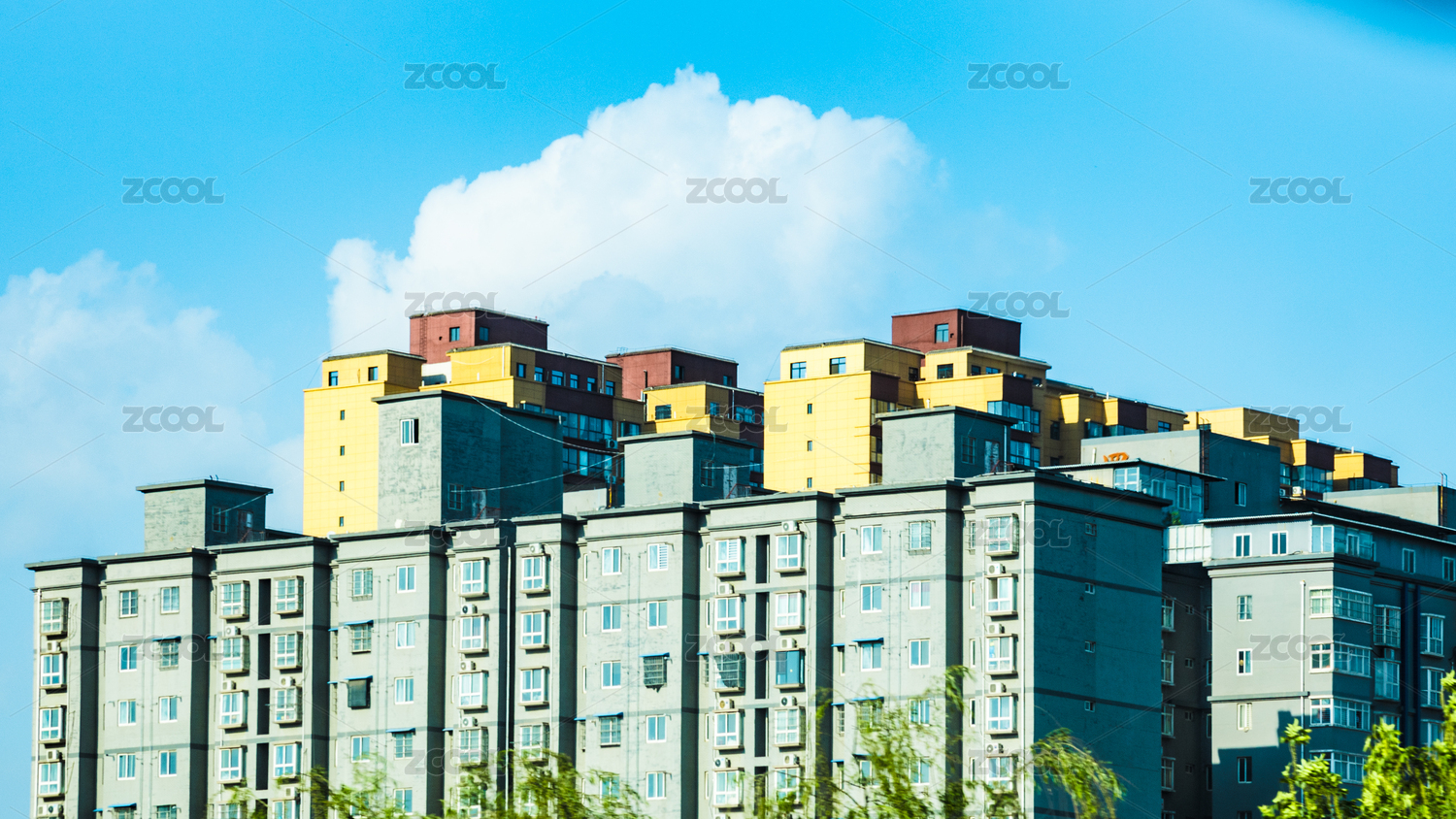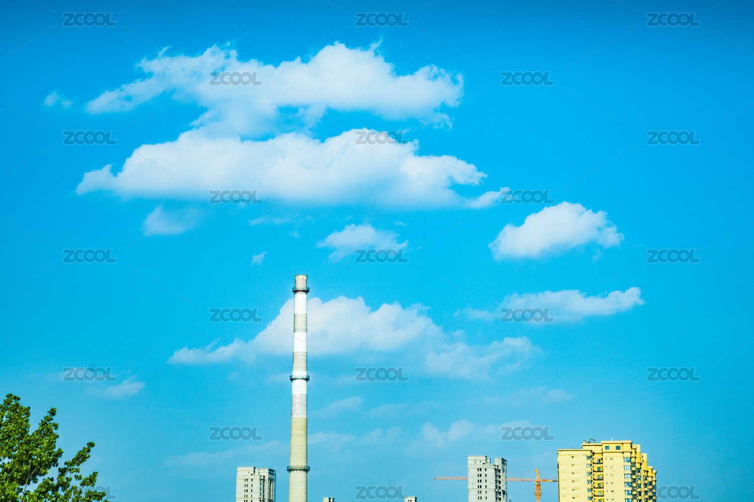 陜西省西安市-藍天映襯下的低角度鳥瞰