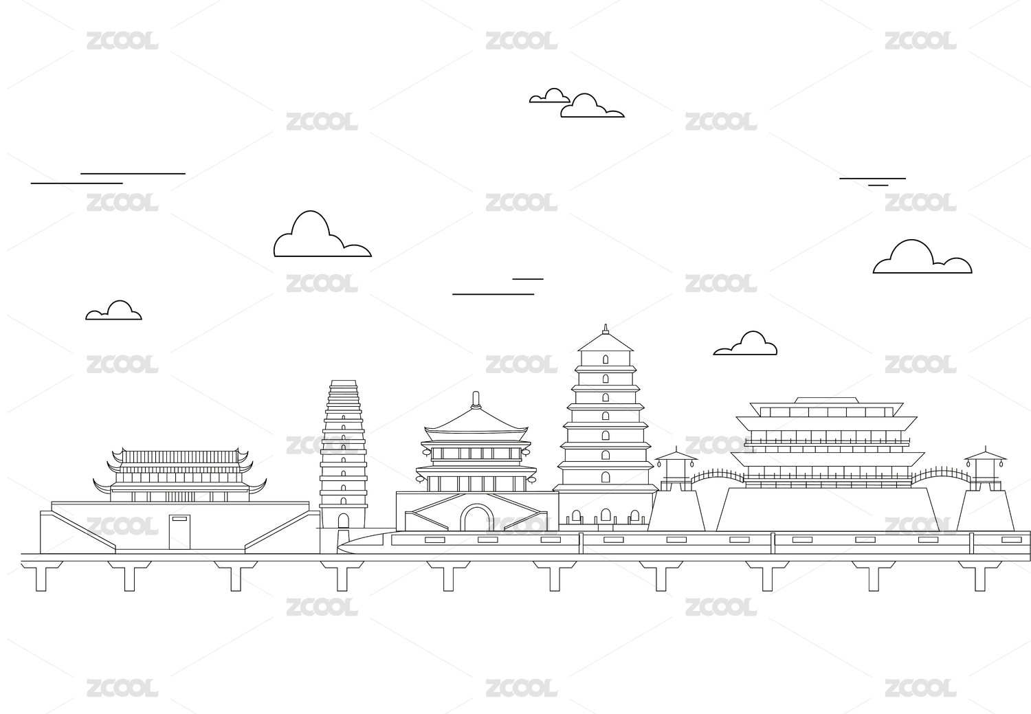 中國陜西省西安市城市數(shù)據(jù)網(wǎng)絡(luò)空間插畫