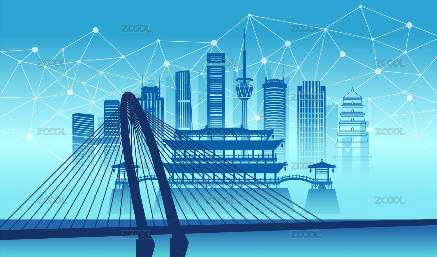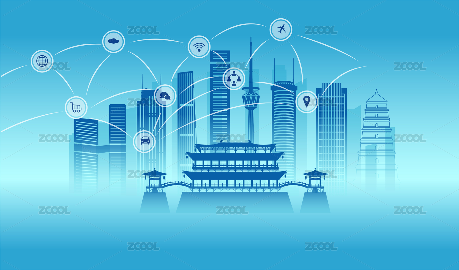 中國陜西省西安市城市數(shù)據(jù)網(wǎng)絡(luò)空間插畫藍色