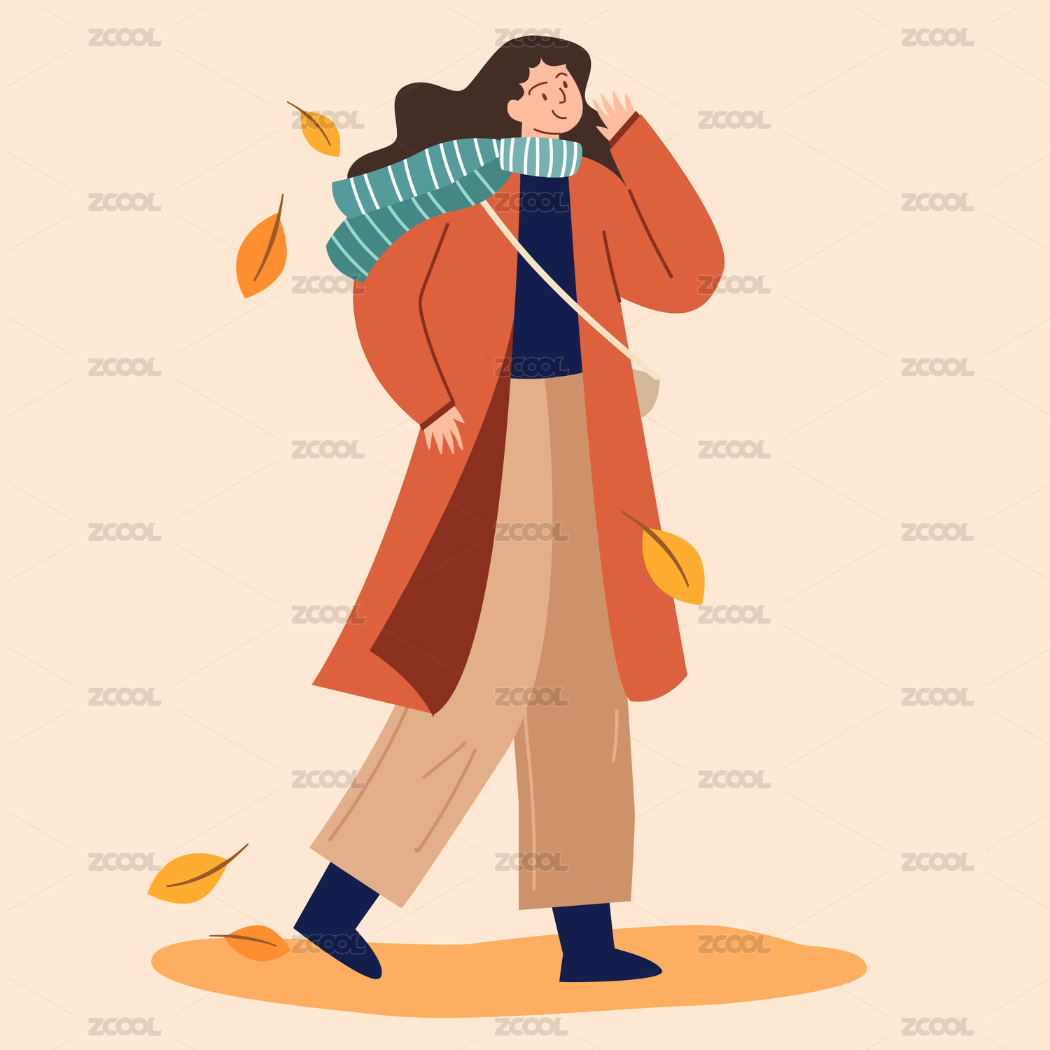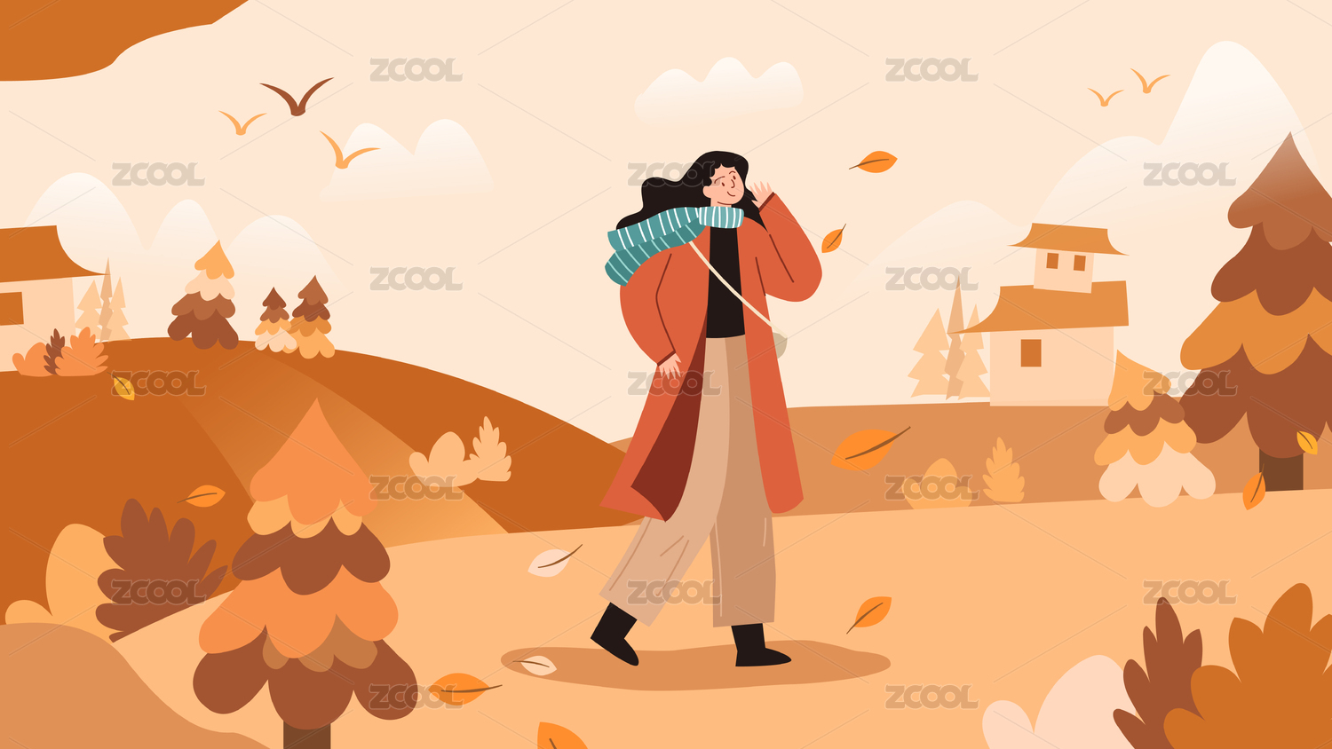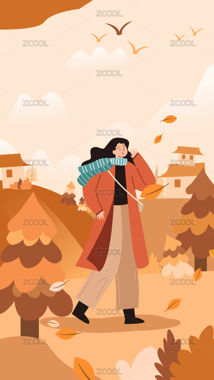 女性秋季落葉小程序網(wǎng)頁海報設(shè)計矢量模版插