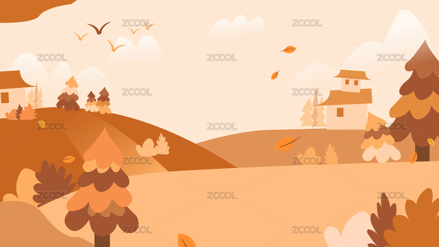 秋季落葉小程序網(wǎng)頁海報設(shè)計矢量模版插畫素