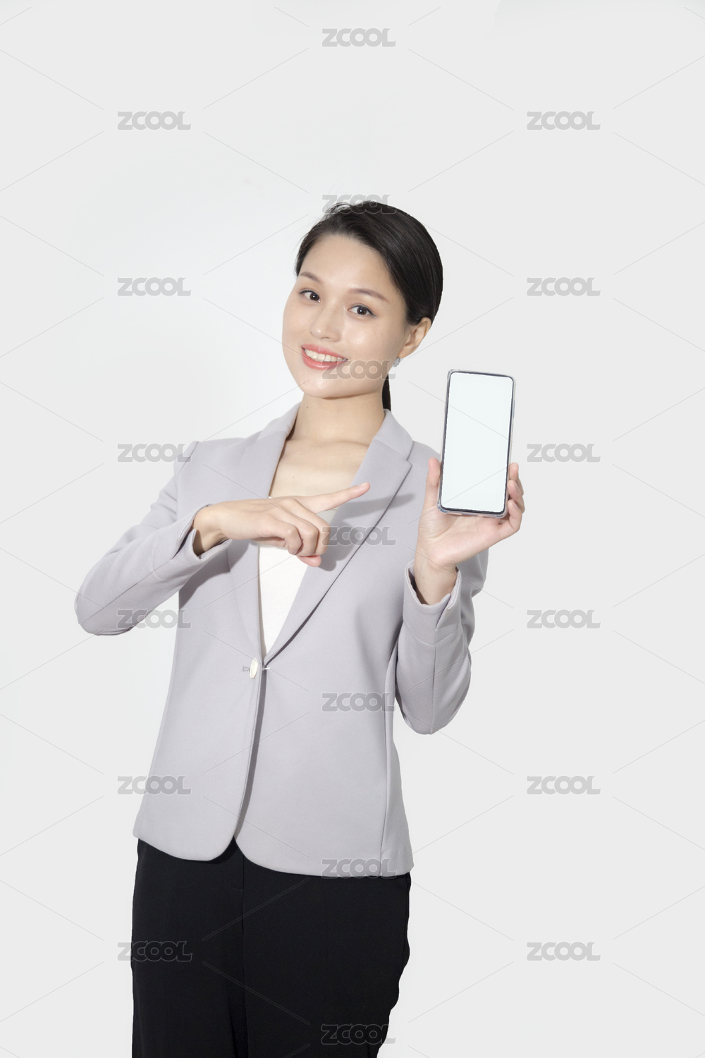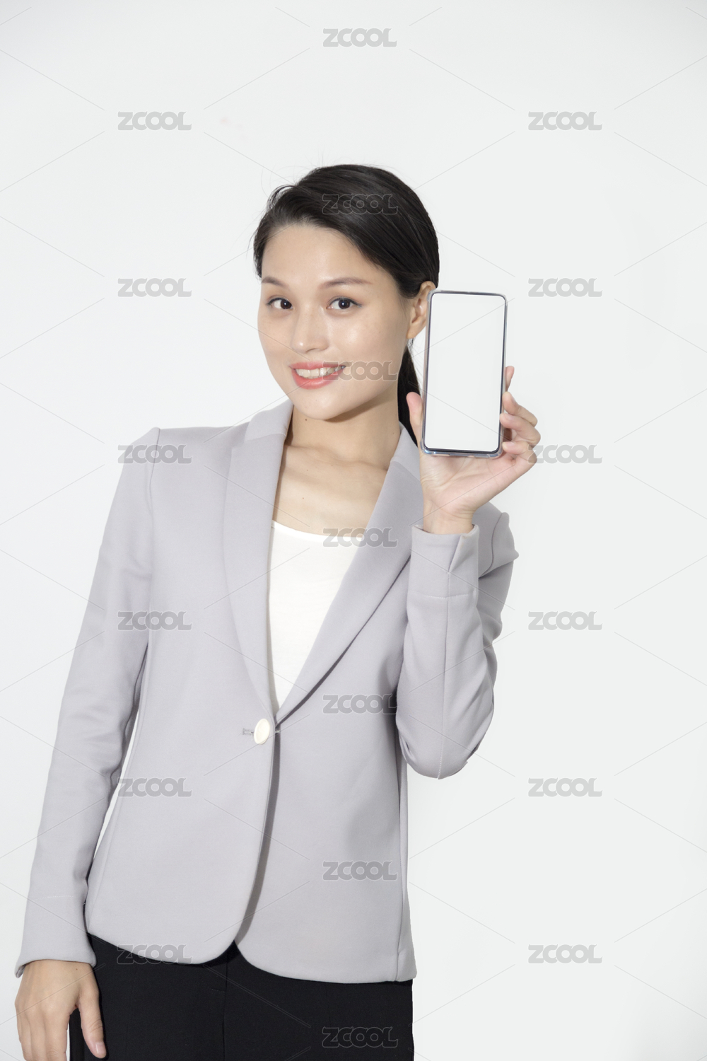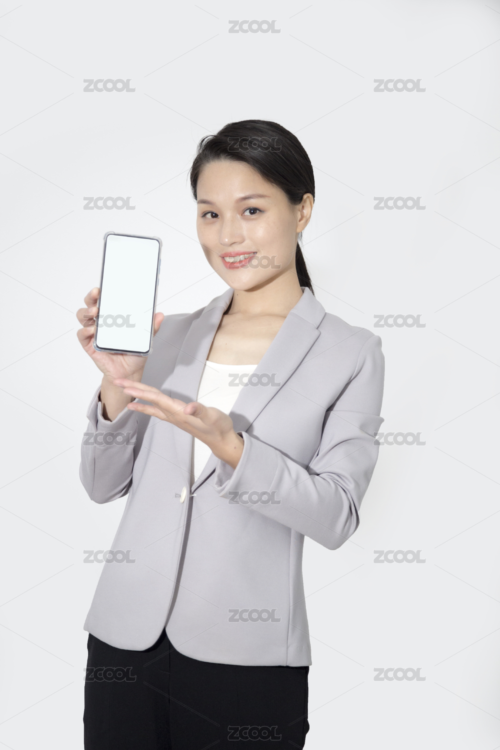 展示手機的職場女人