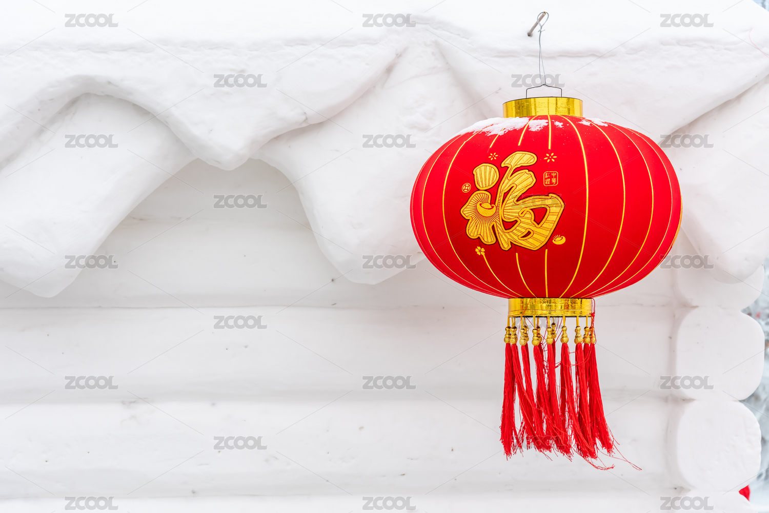 中國黑龍江哈爾濱的雪屋雪雕和紅燈籠
