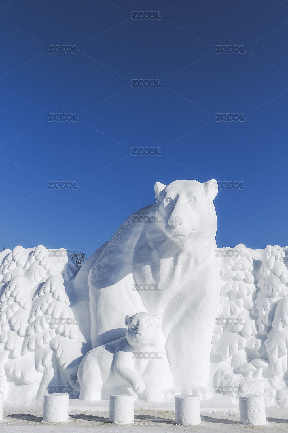 冬季冰雪雕塑--北極熊母子雕塑