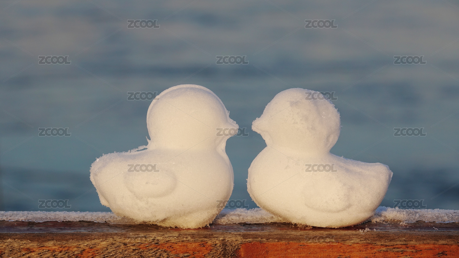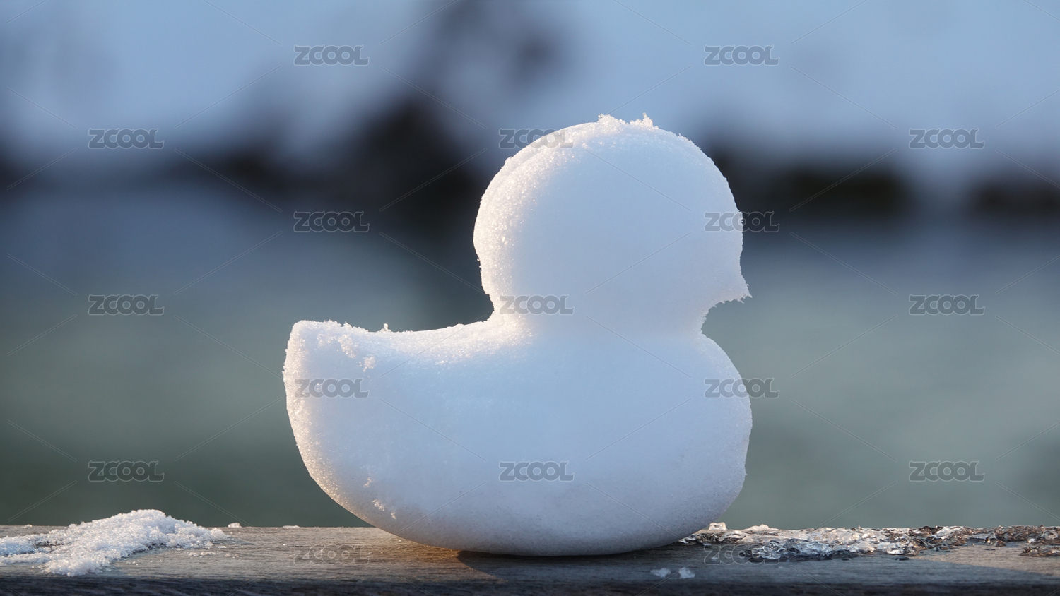 陽光下雪雕小鴨子