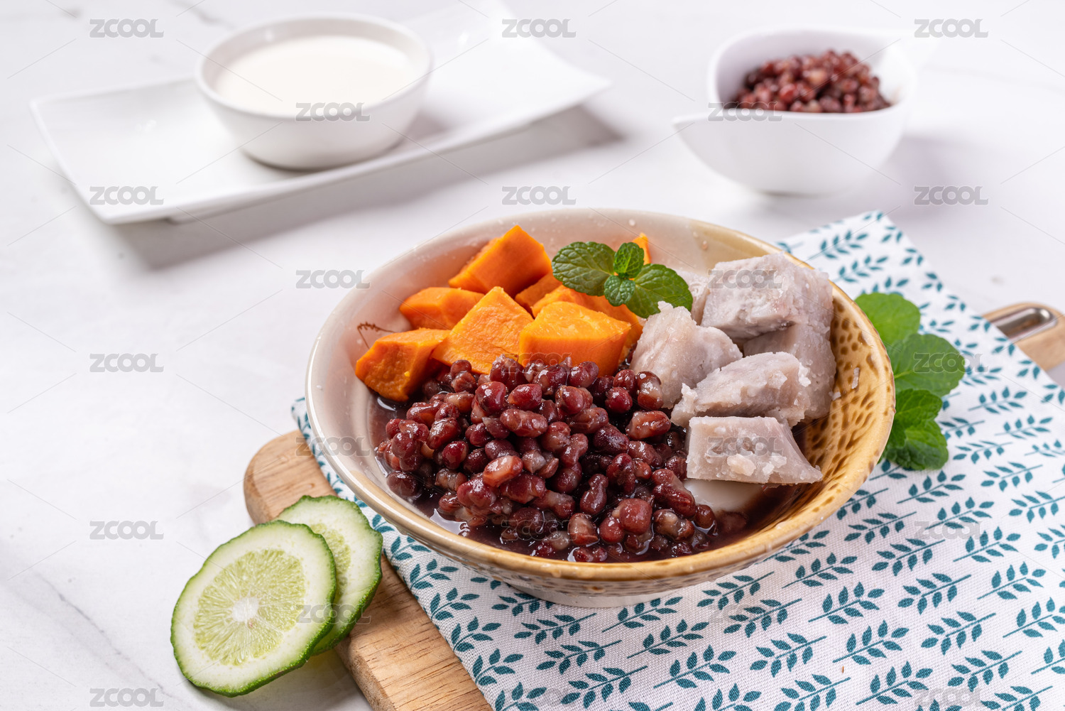 桌面上的一碗四果湯