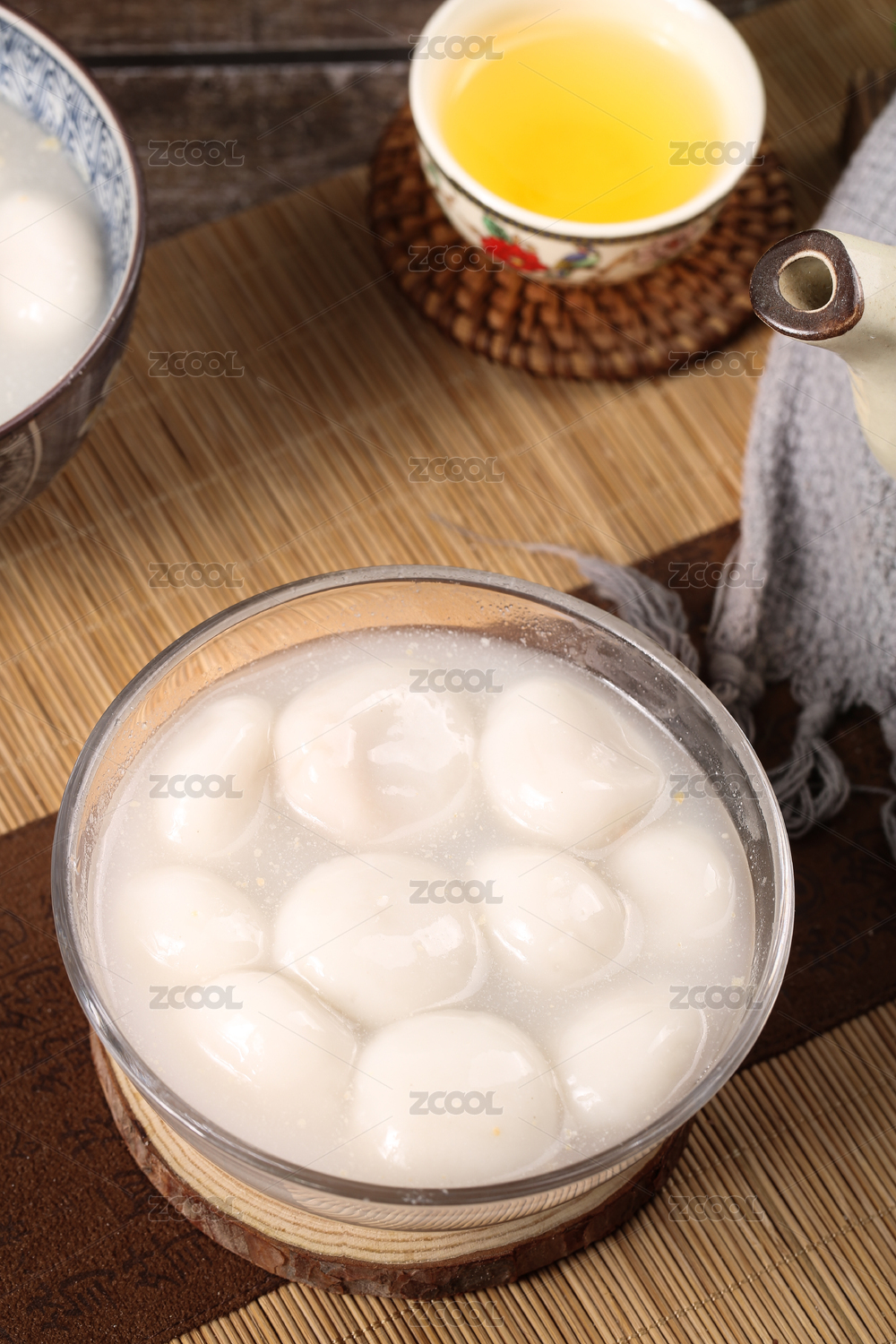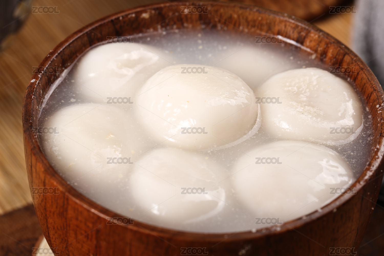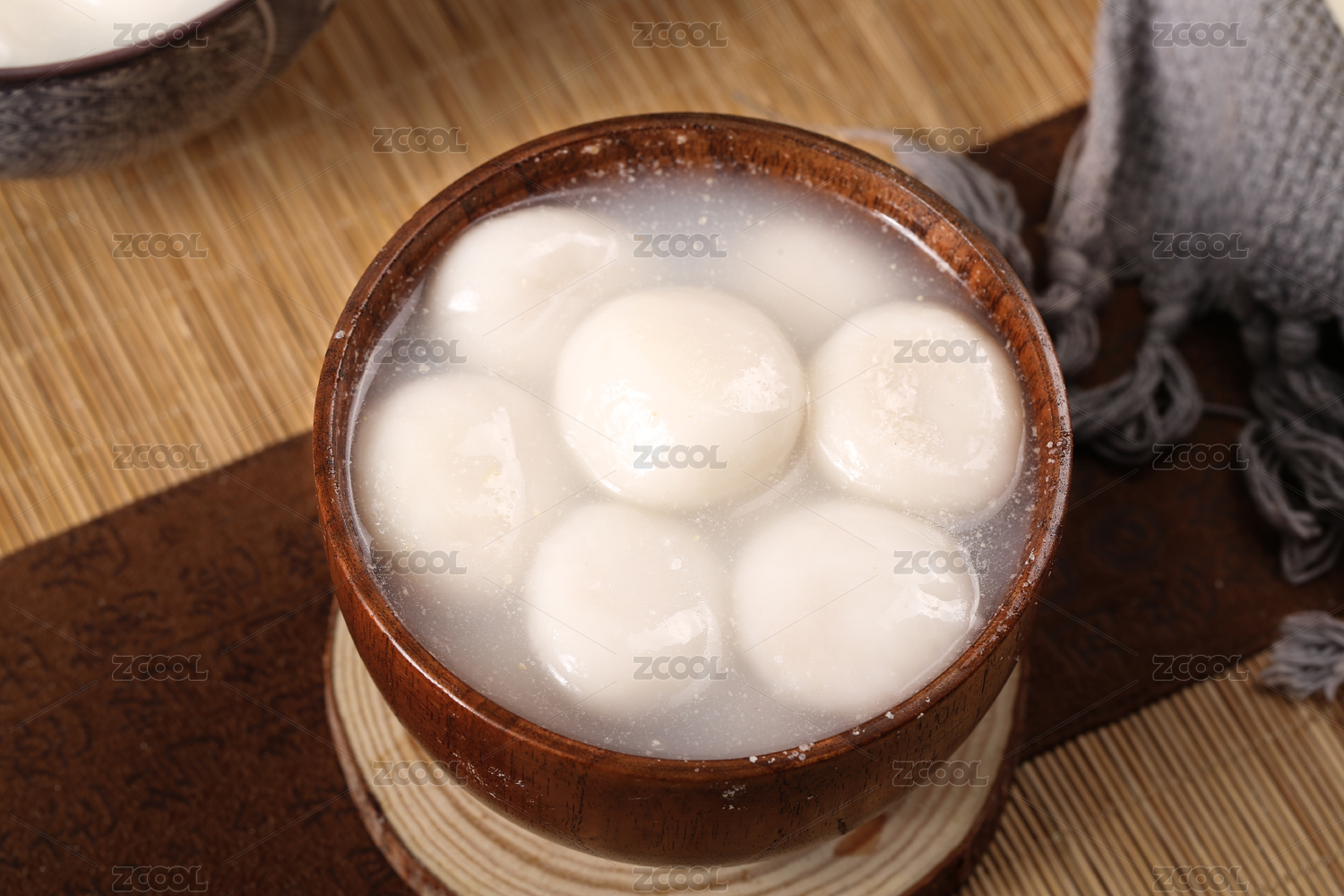 木板上放著一碗元宵甜湯