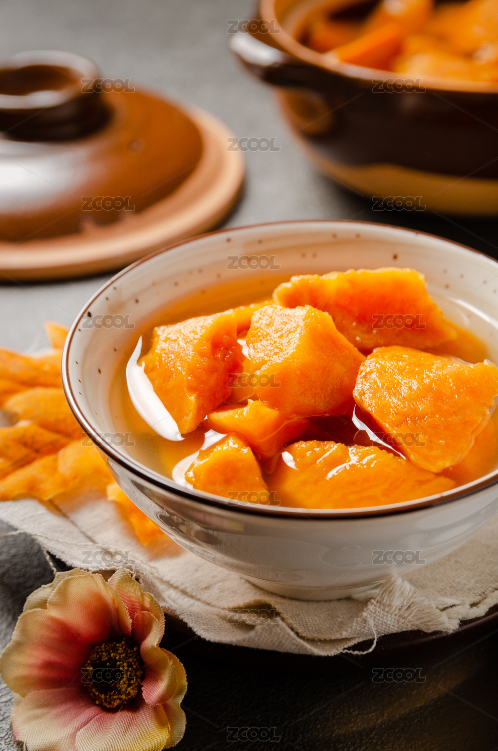 桌面上的盤子里的美味可口的小吊梨湯