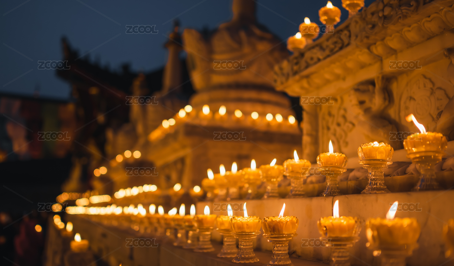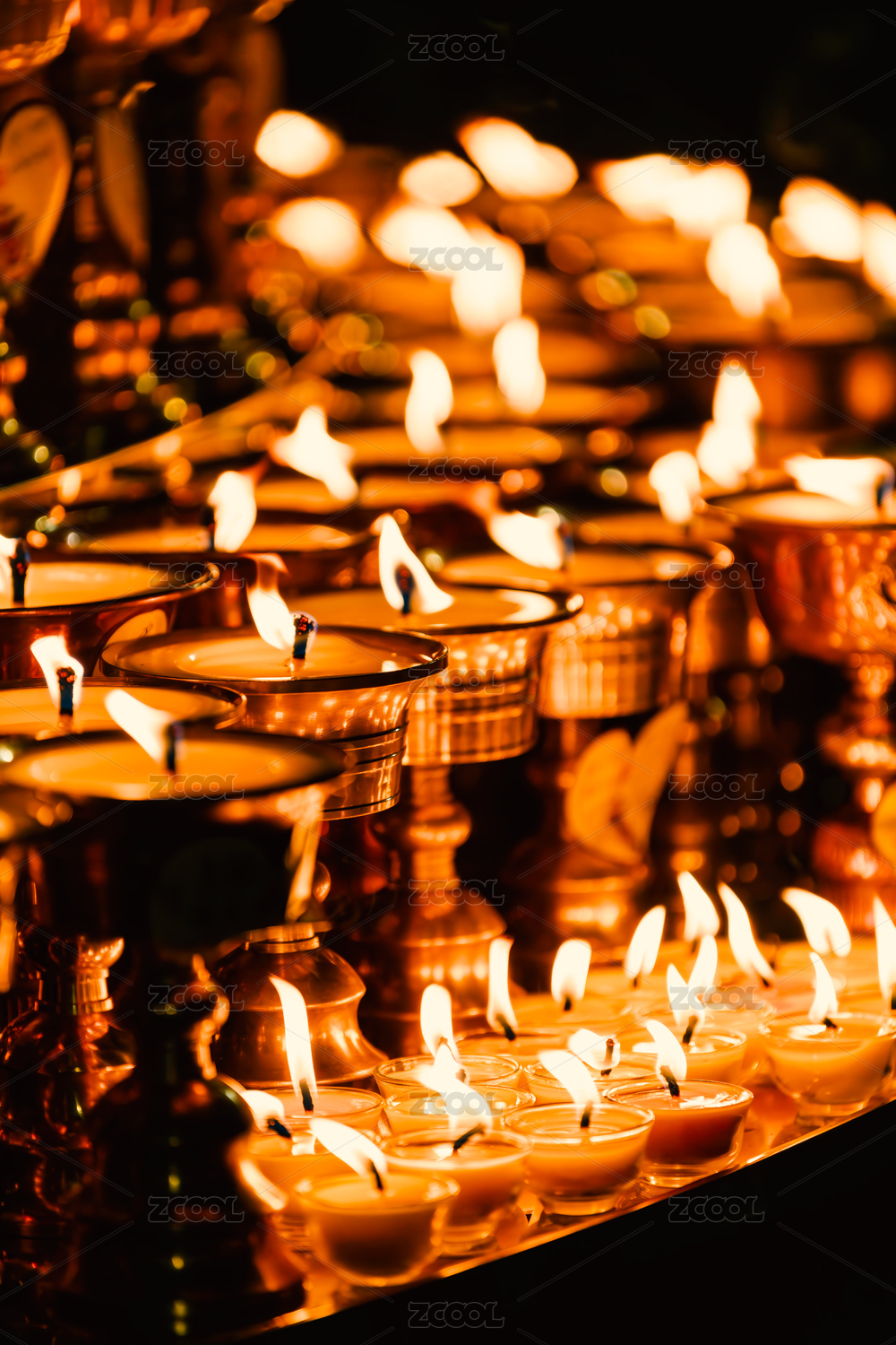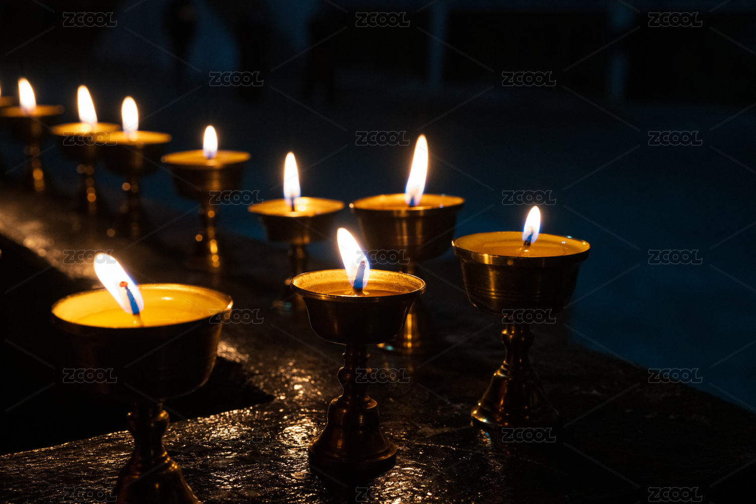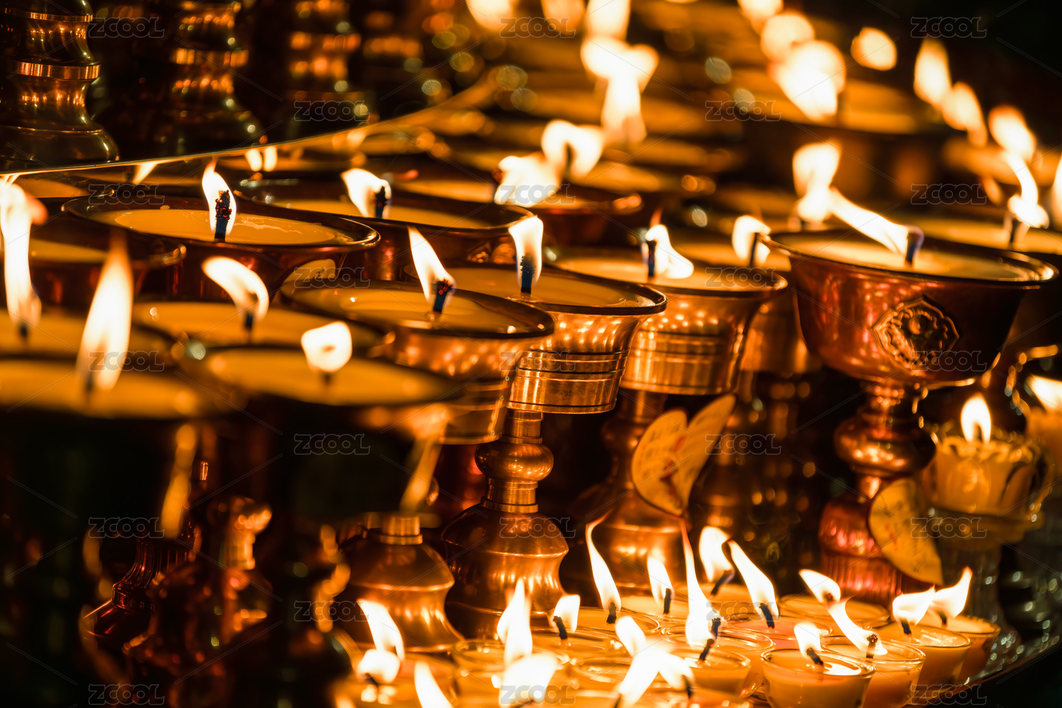 中國西藏拉薩色拉寺燃燈日點燃的酥油燈