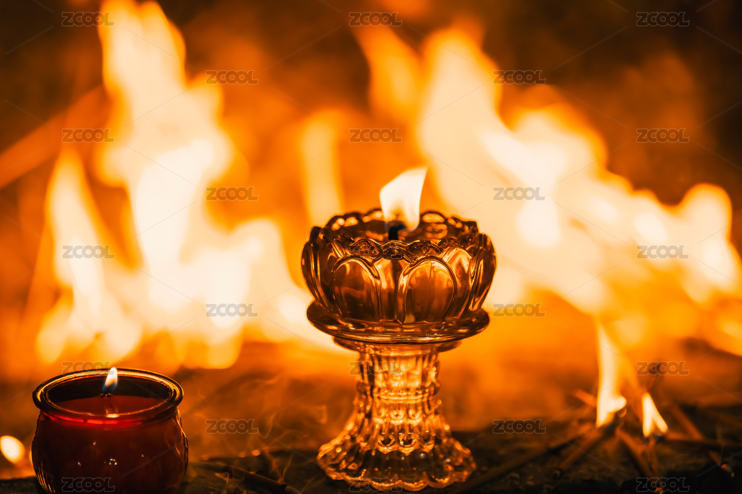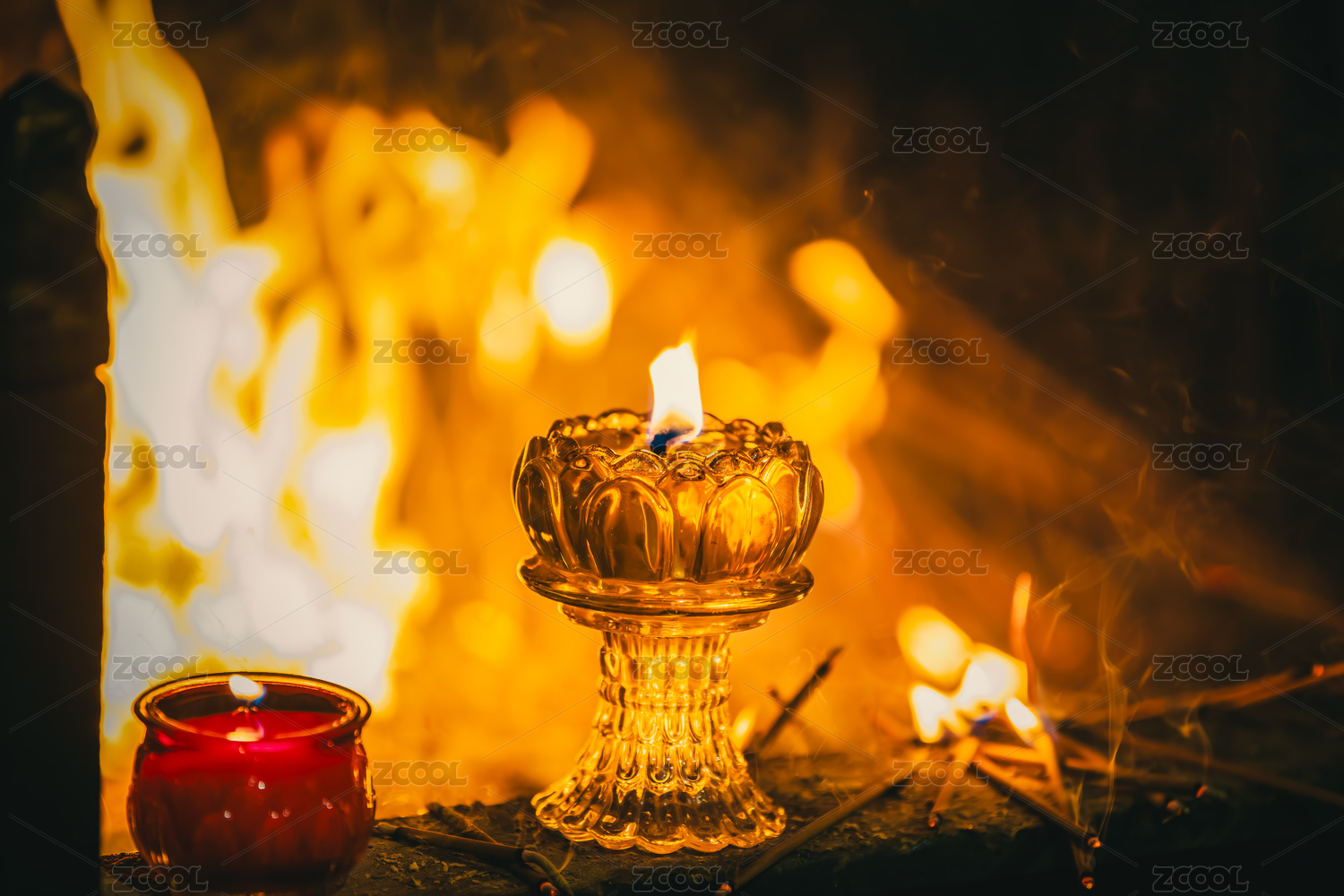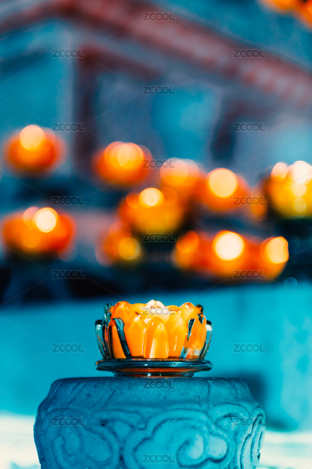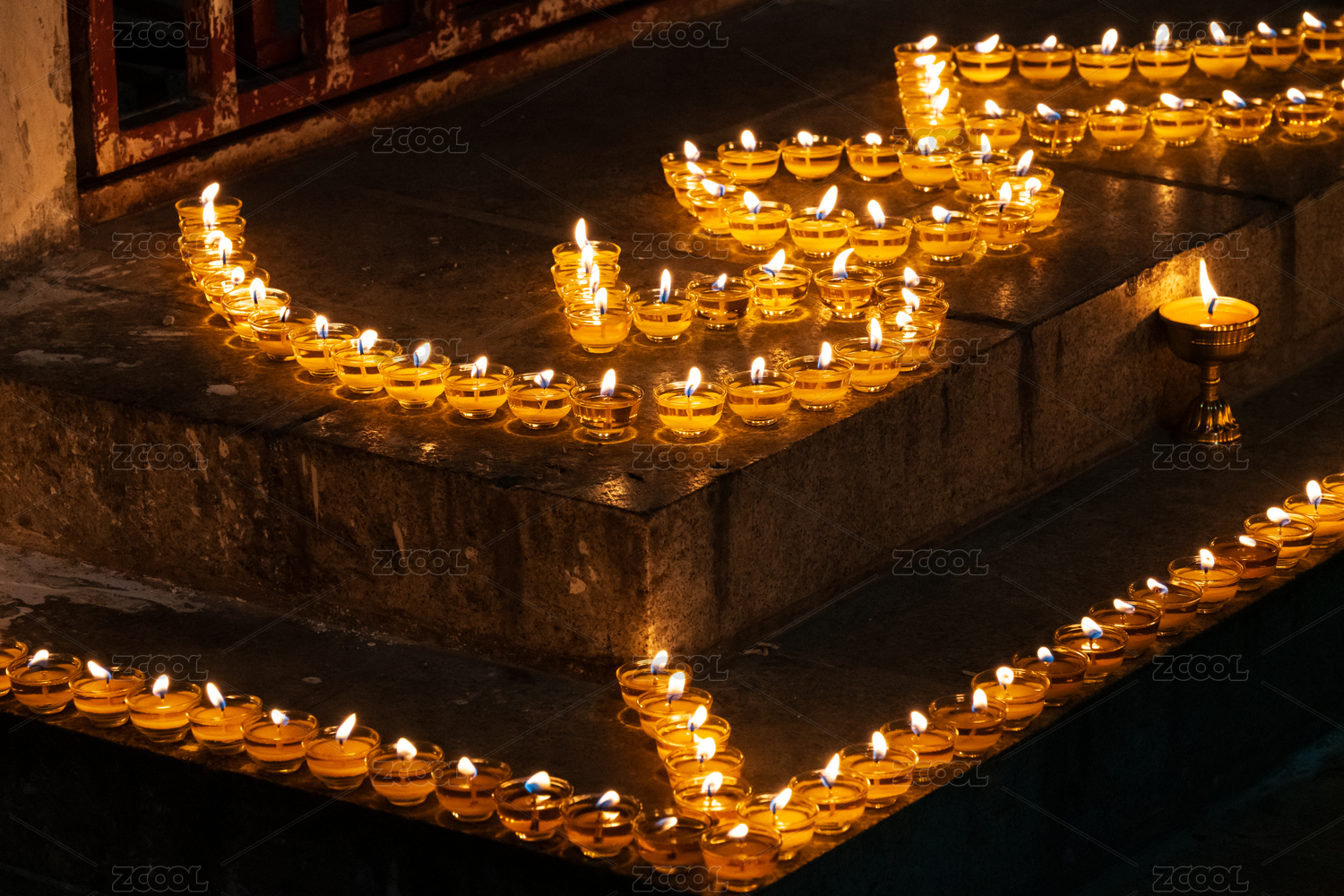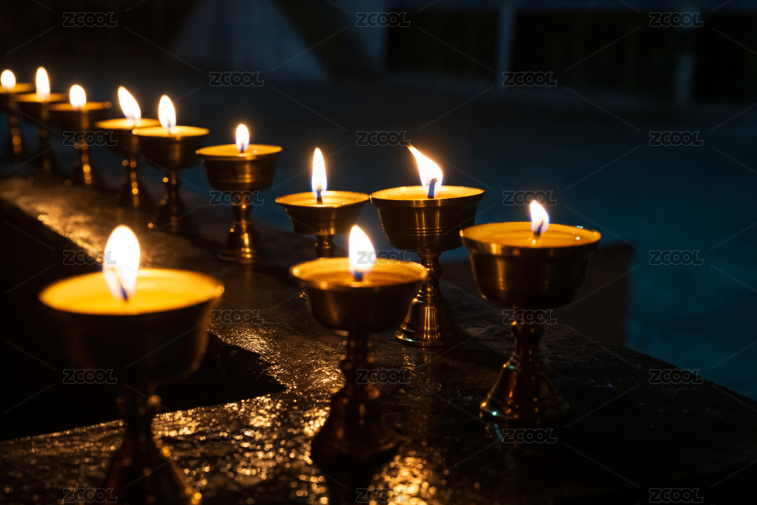 中國西藏拉薩色拉寺燃燈日點燃的酥油燈