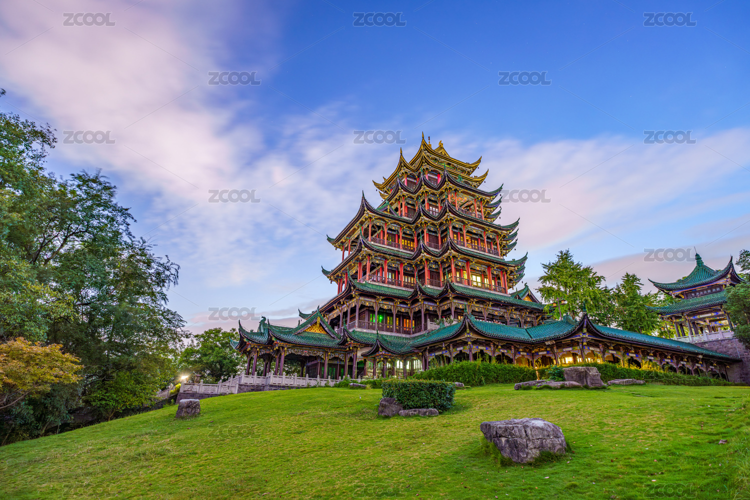 中國重慶鴻恩寺森林公園內(nèi)鴻恩閣夜晚遠(yuǎn)景