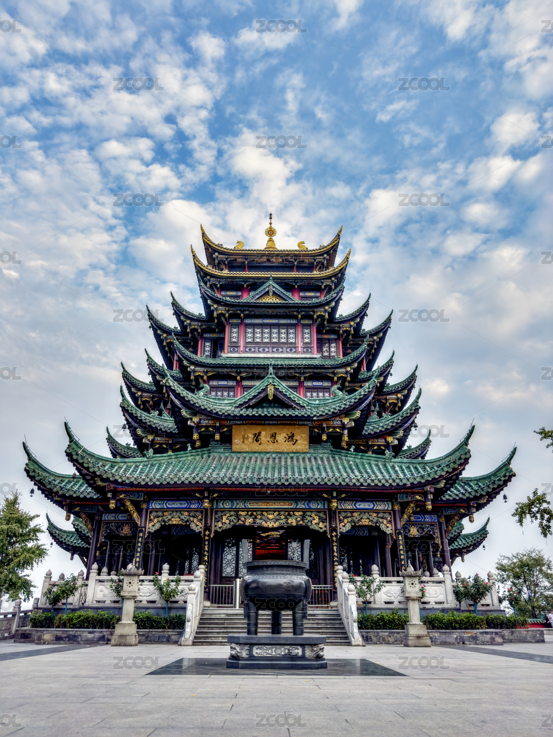 藍(lán)天下的重慶鴻恩寺森林公園鴻恩閣廣場