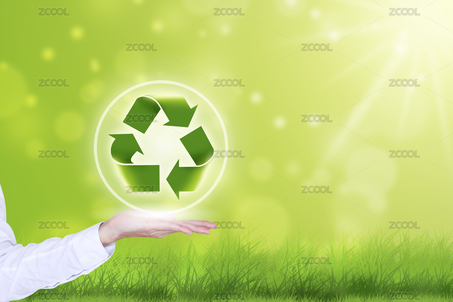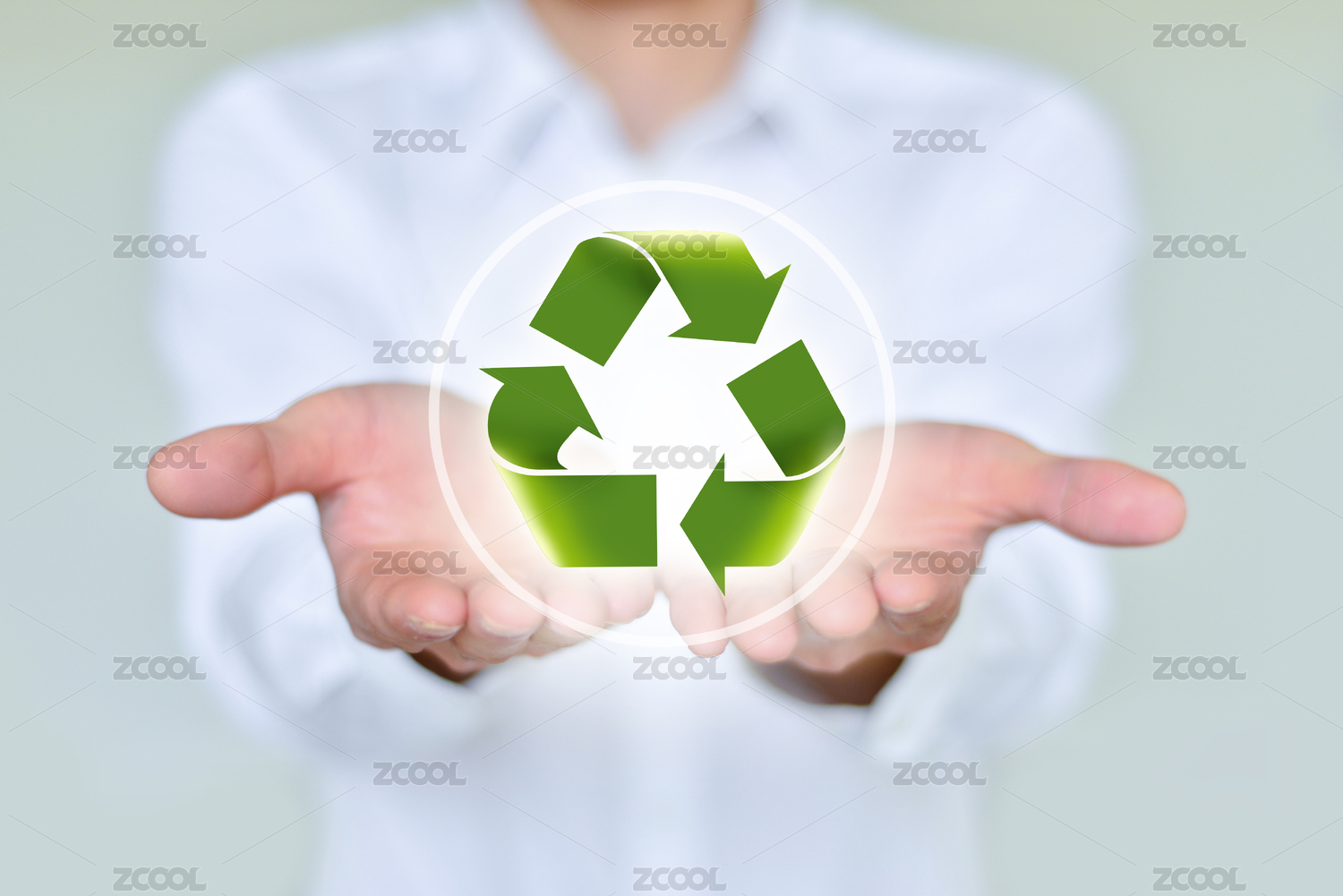 雙手捧著回收循環(huán)可持續(xù)發(fā)展圖標(biāo)的創(chuàng)意概念圖