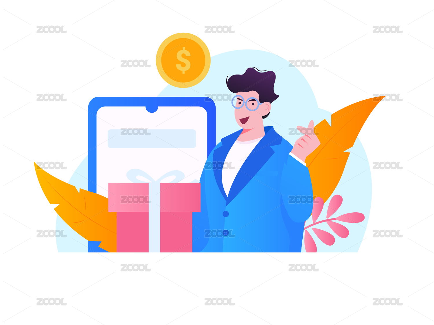 邀請(qǐng)好友獲得好禮,扁平矢量人物場景創(chuàng)意概念插畫
