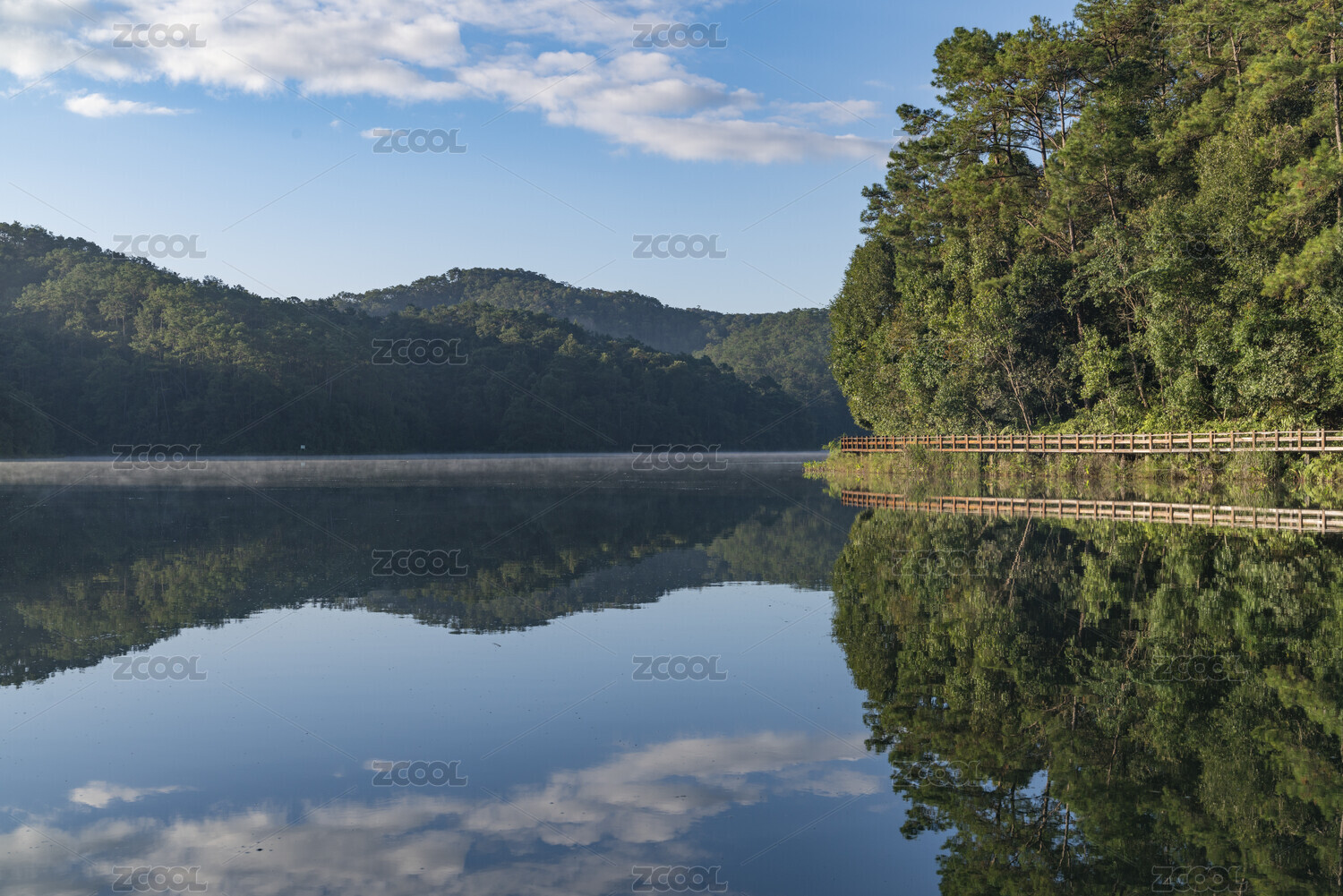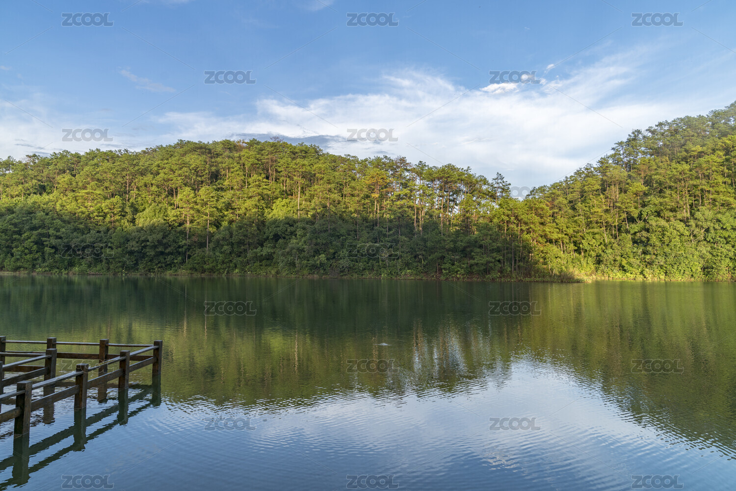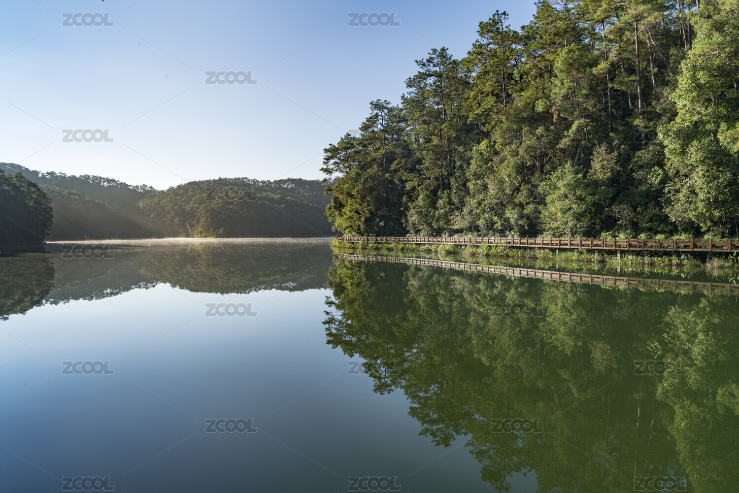 倒映樹(shù)林的湖面