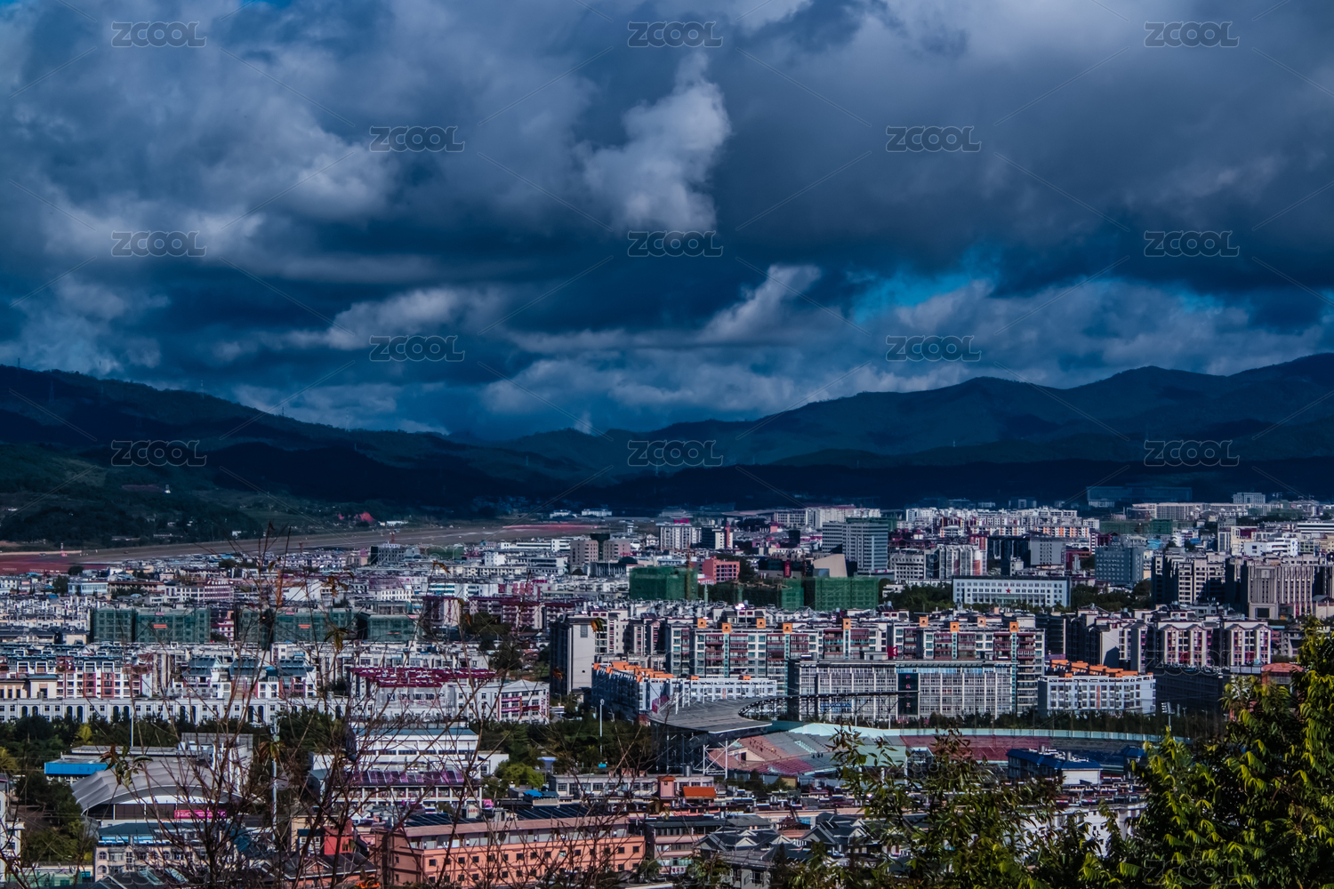 中國(guó)云南省普洱市城區(qū)高樓建筑景觀