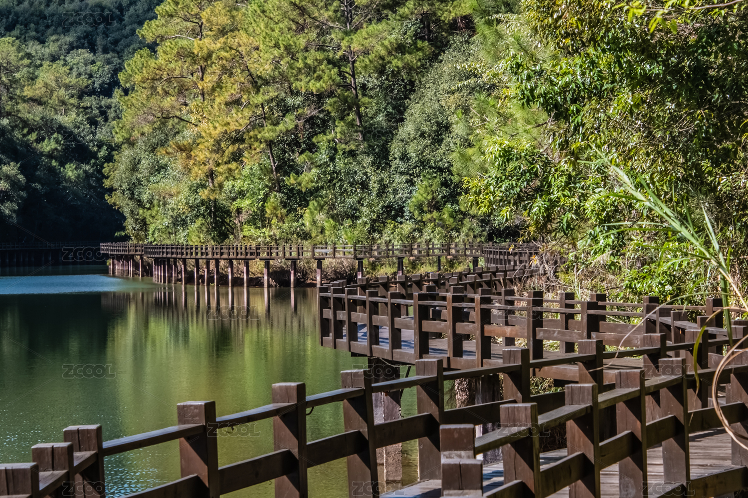 中國(guó)云南省普洱市梅子湖畔木棧道觀景臺(tái)建筑