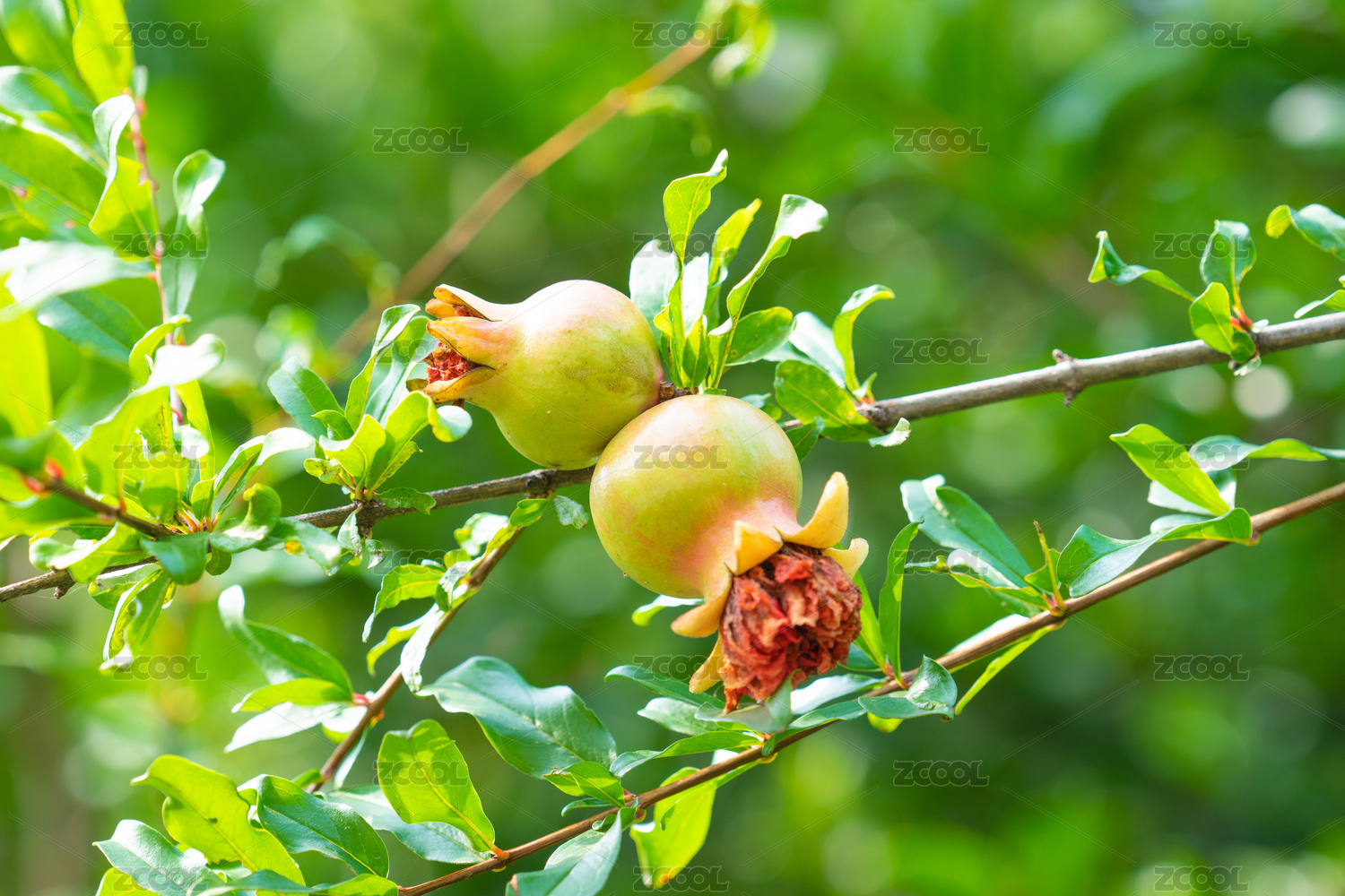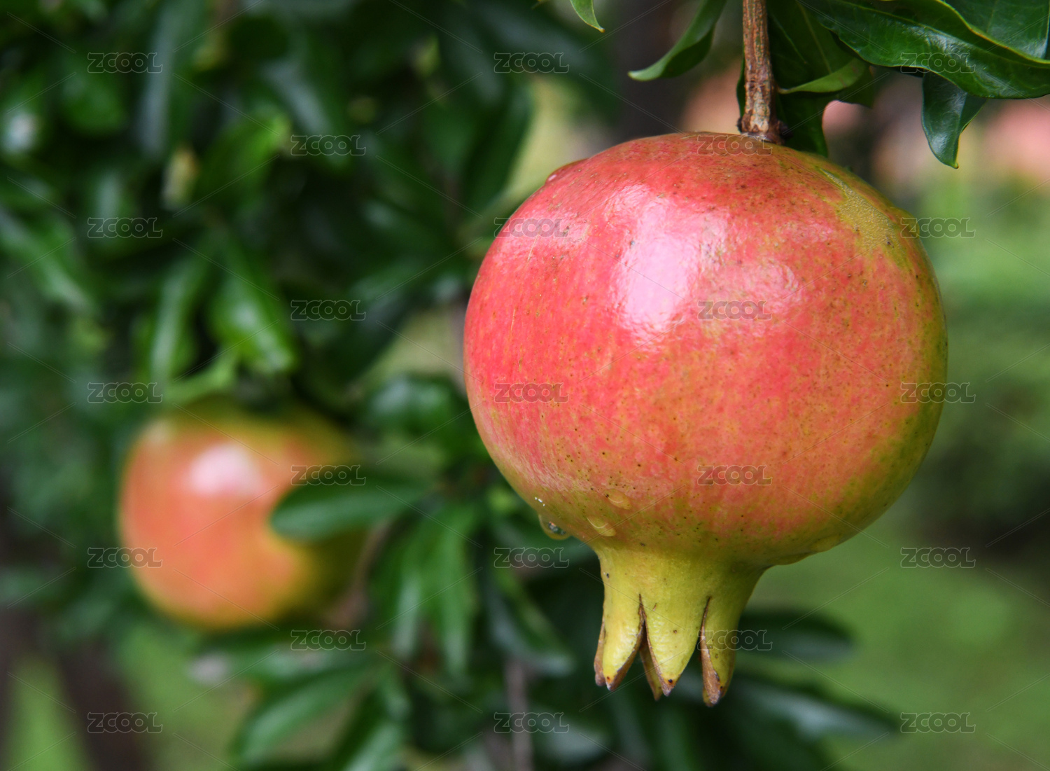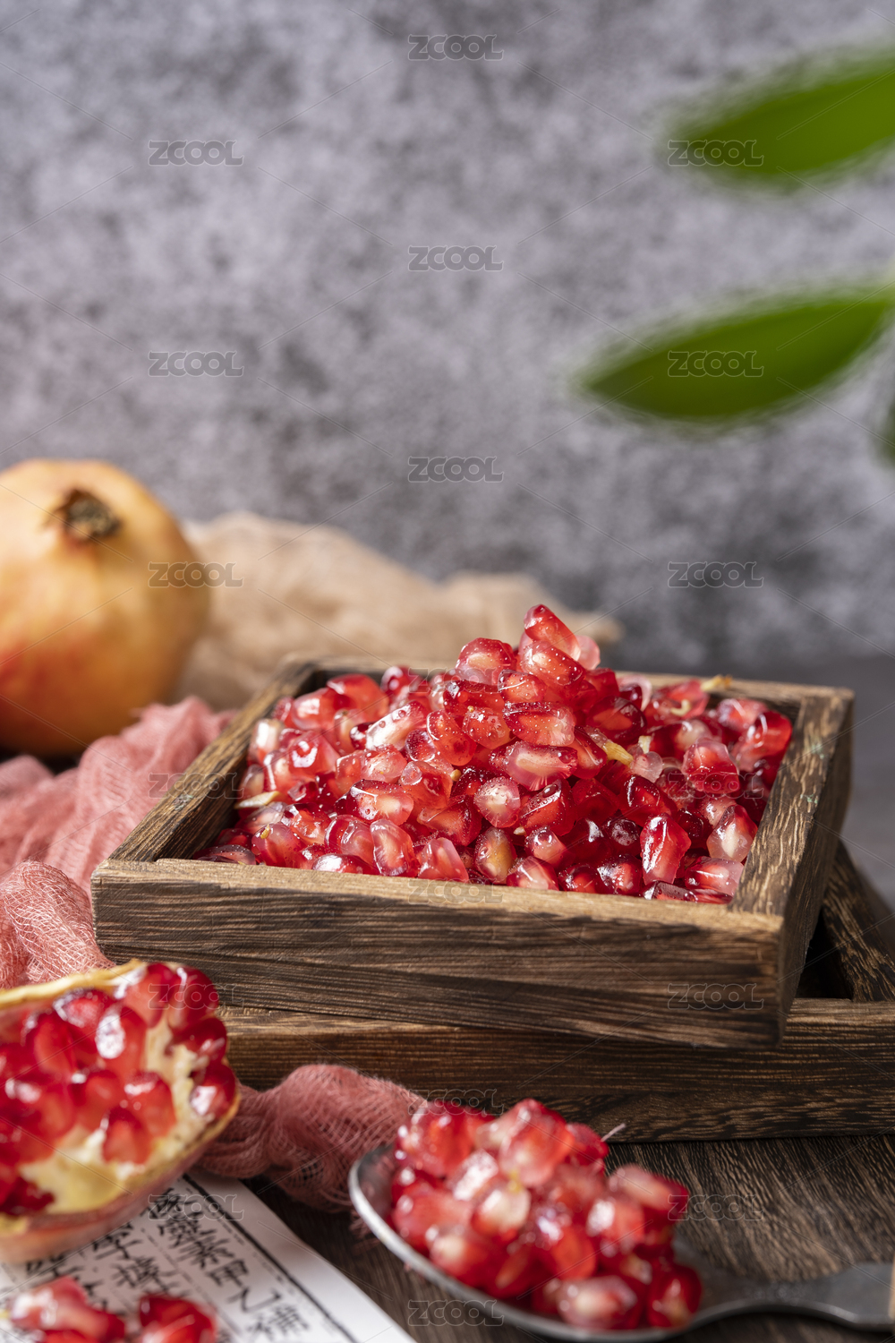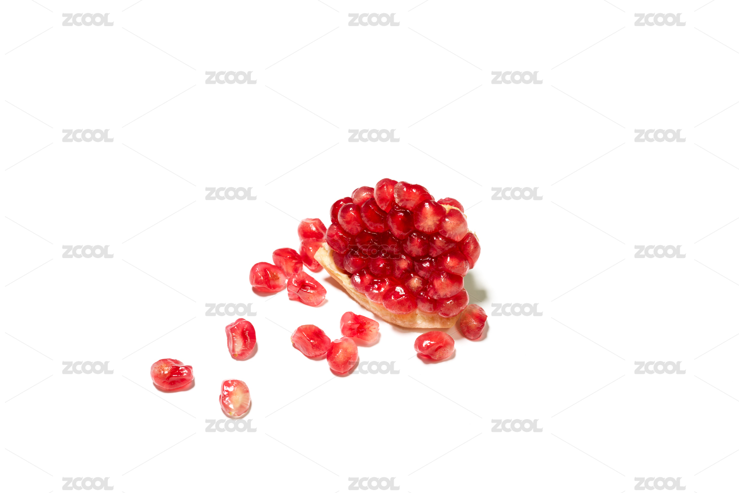 綠色草坪上放著剝開的紅石榴和石榴籽