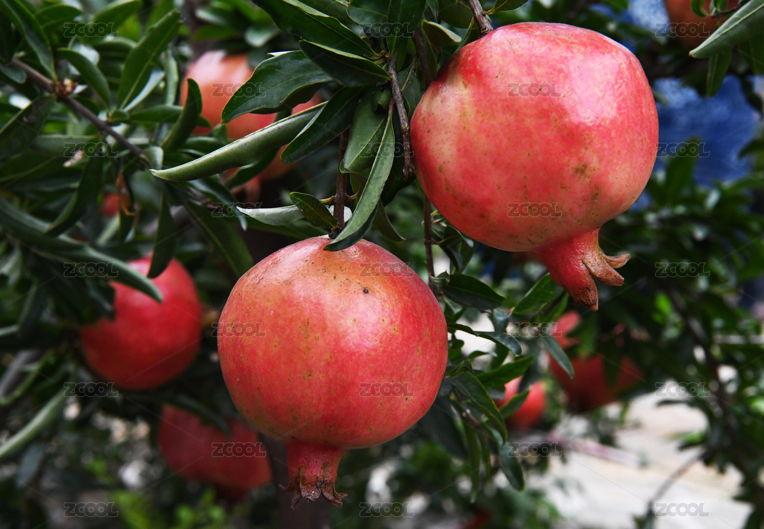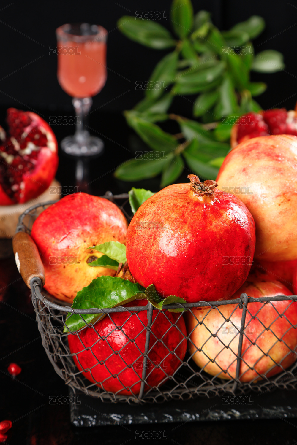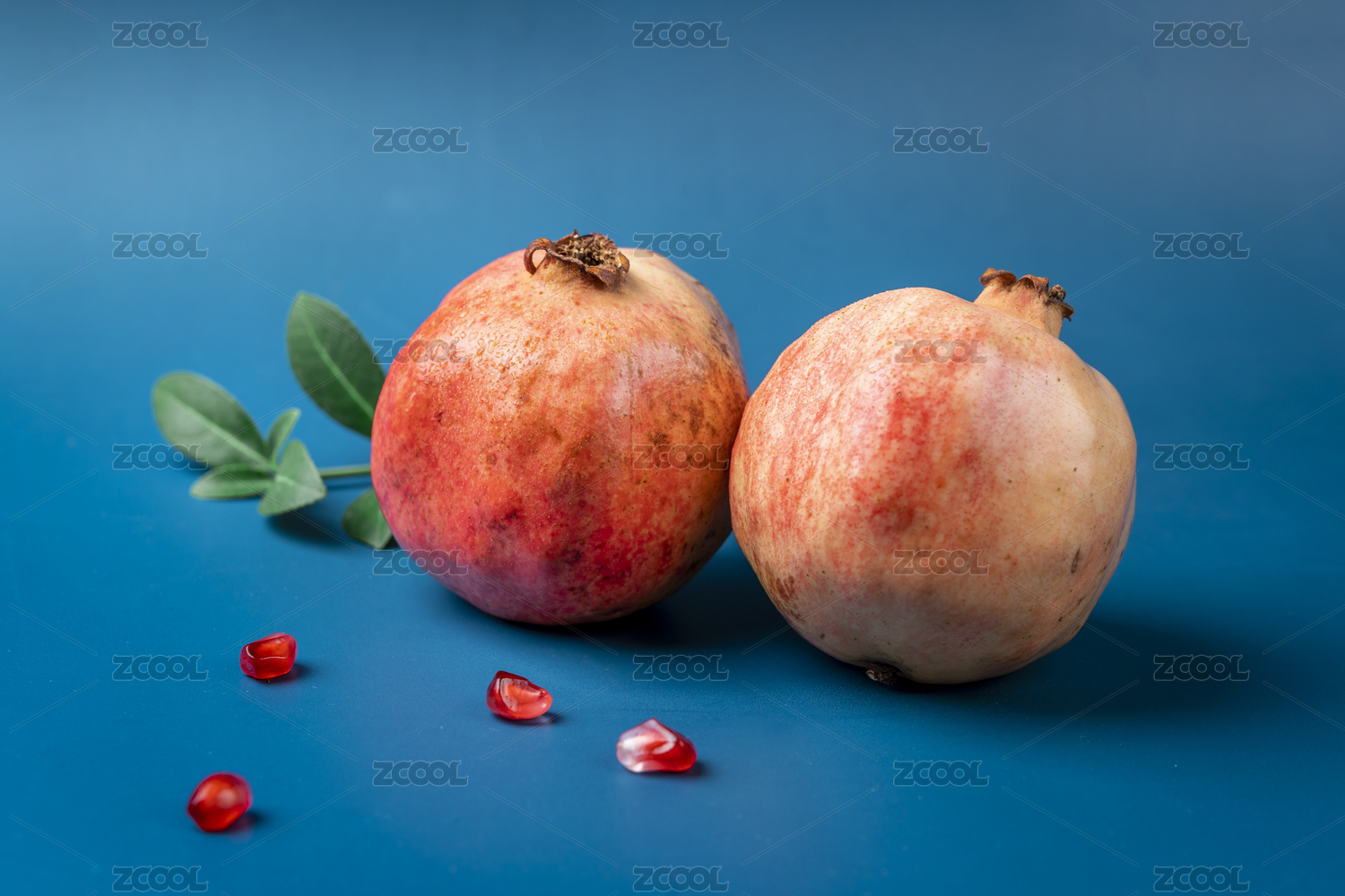 散落在做舊青藍色木質(zhì)椅的紅石榴