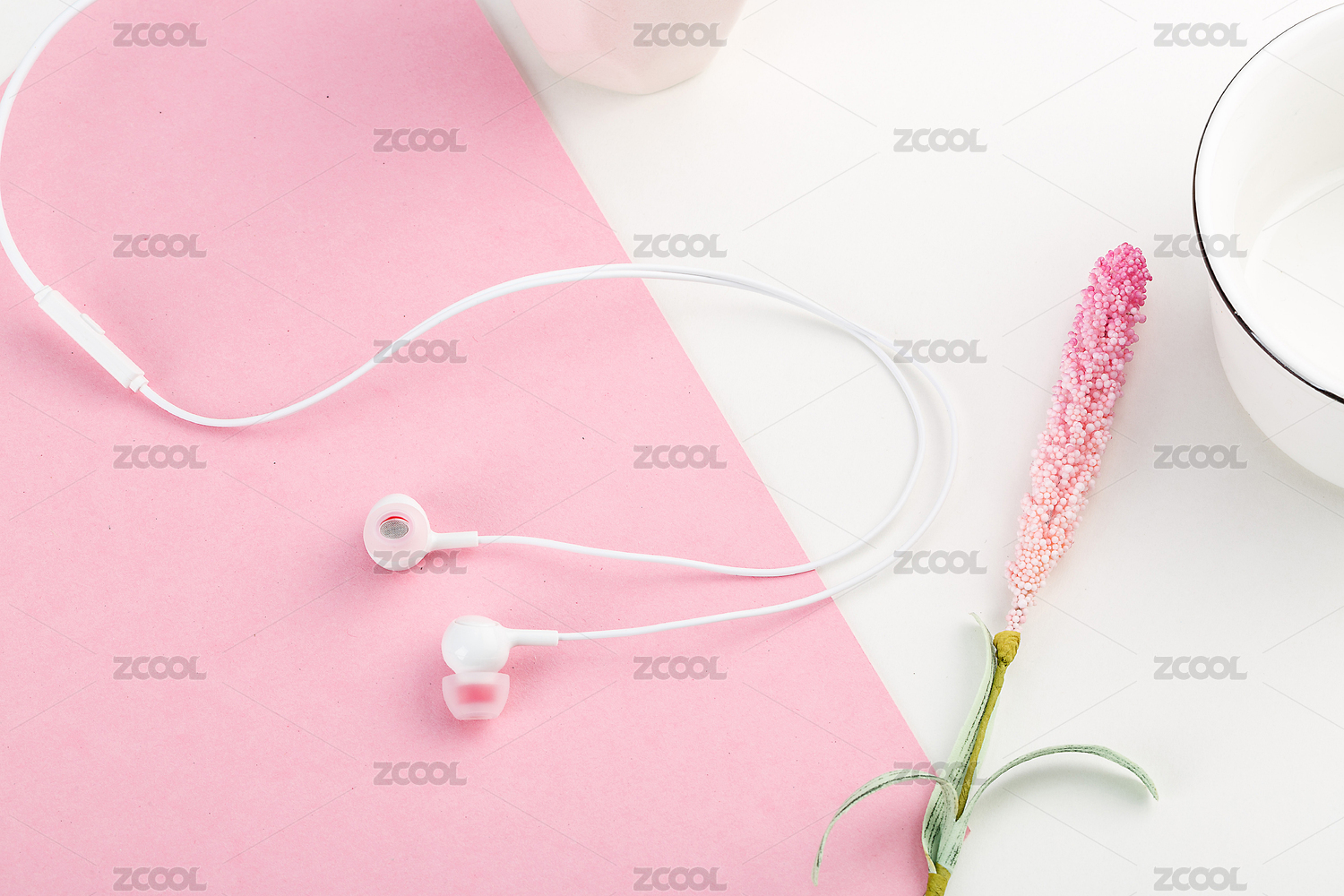 白色背景有線耳機