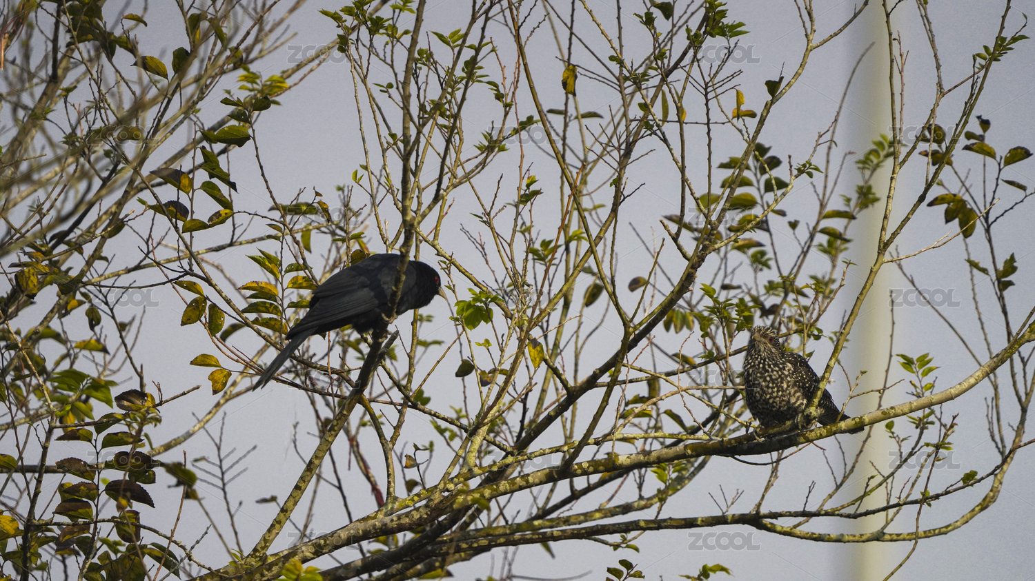深圳蓮花山公園枝頭棲息的兩只噪鳥