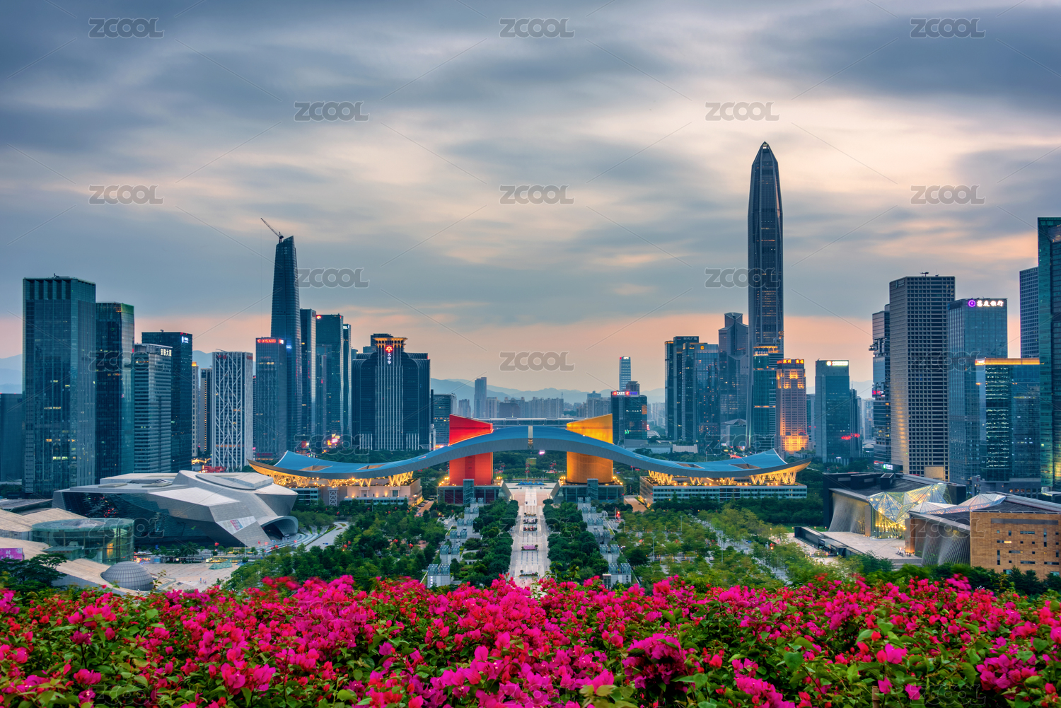 中國廣東深圳蓮花山公園及主峰遠(yuǎn)眺