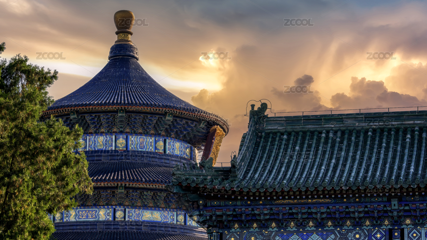 日落下的天壇皇家建筑