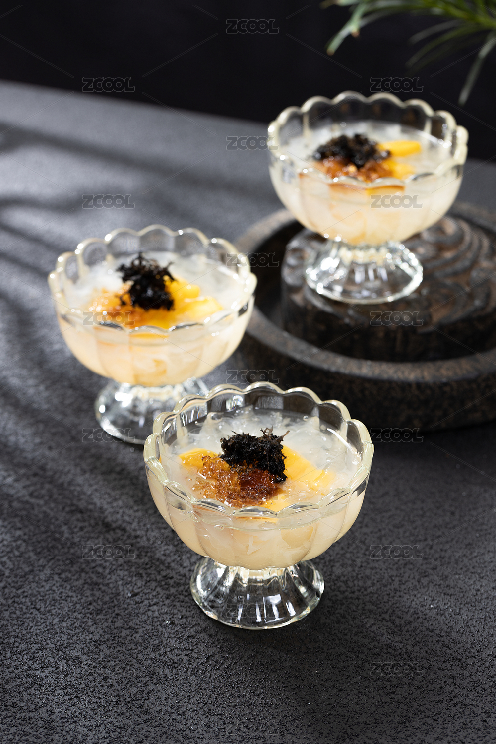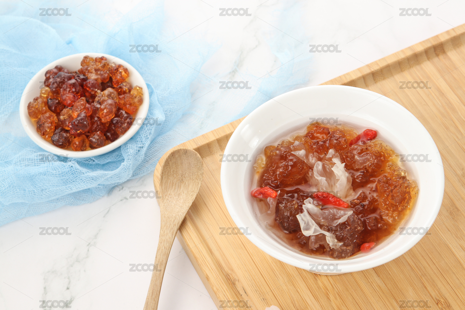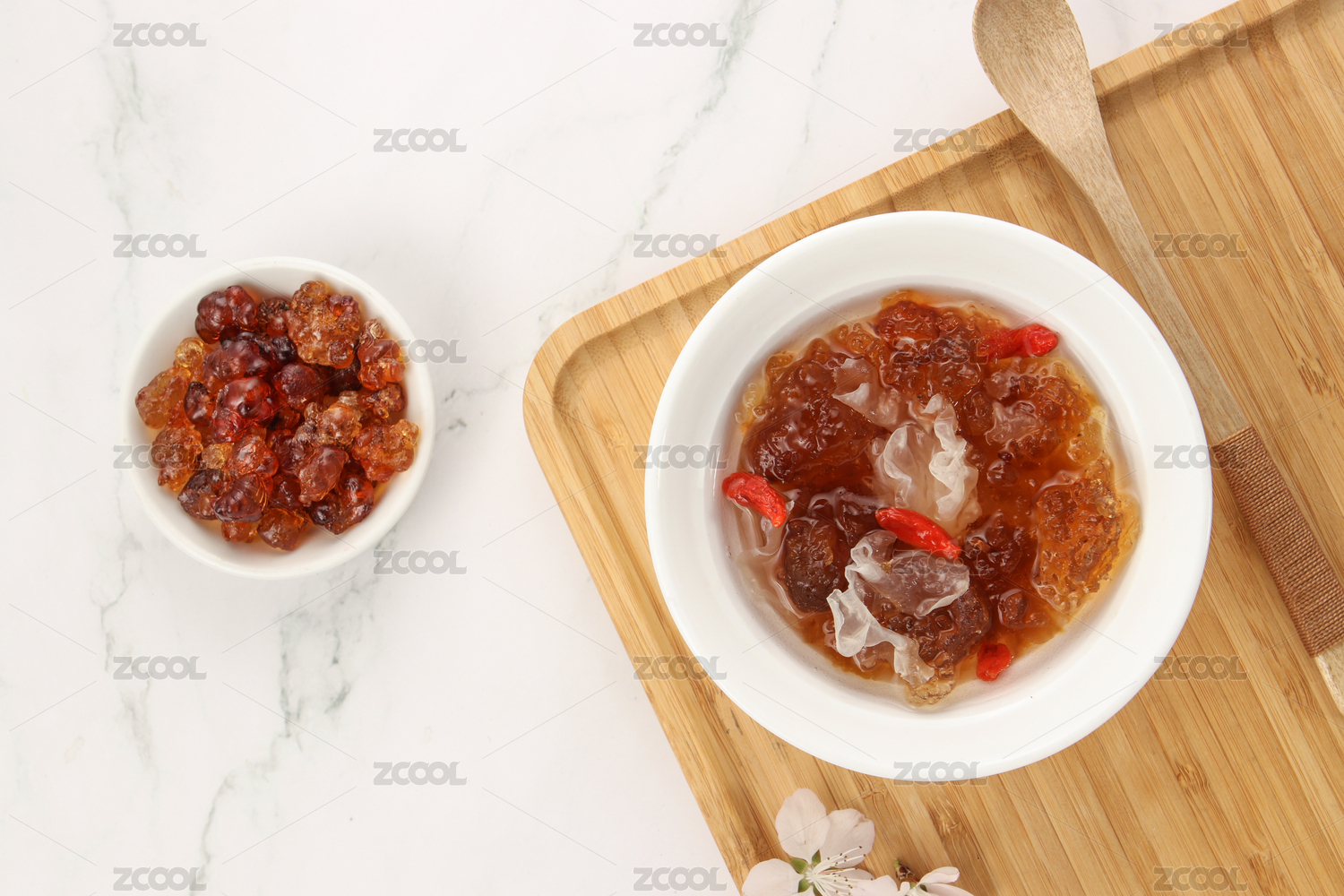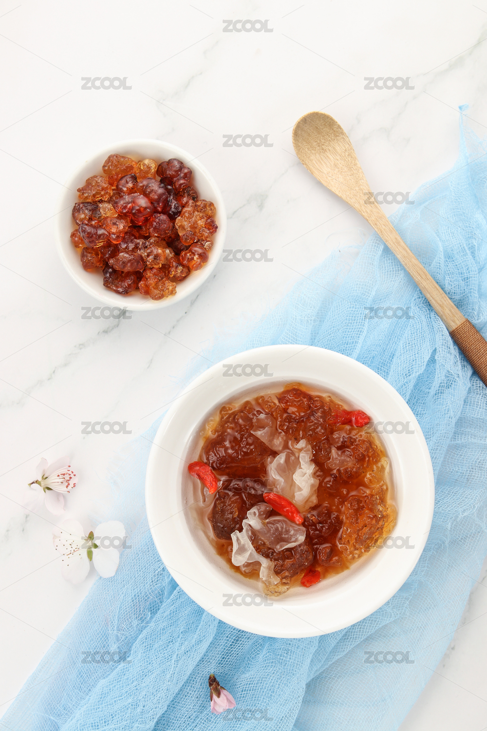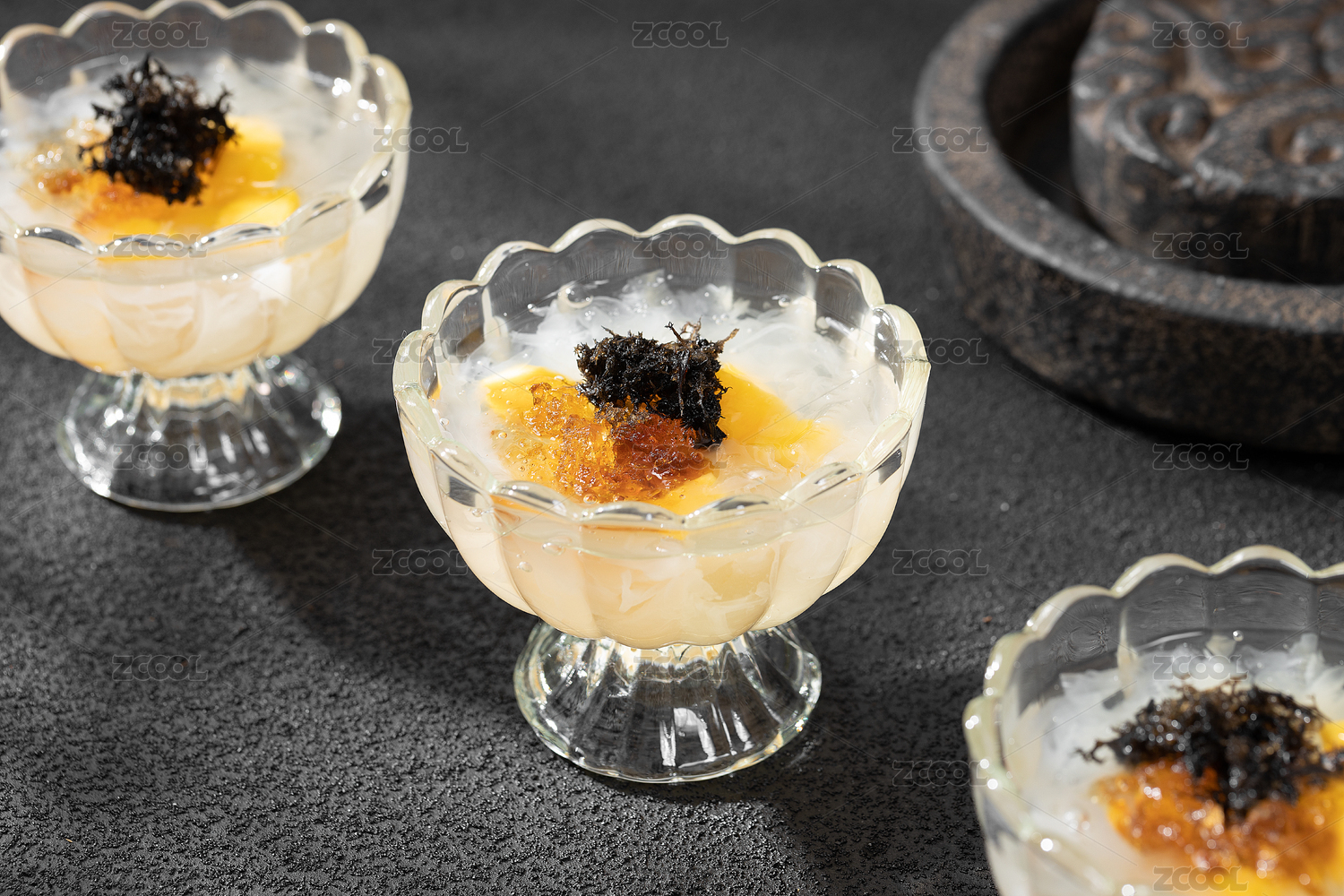 玻璃杯里的海澡桃膠銀耳羹桃膠燕窩