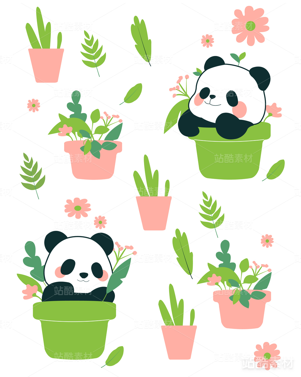 矢量卡通原創(chuàng)文創(chuàng)熊貓植物插畫插圖