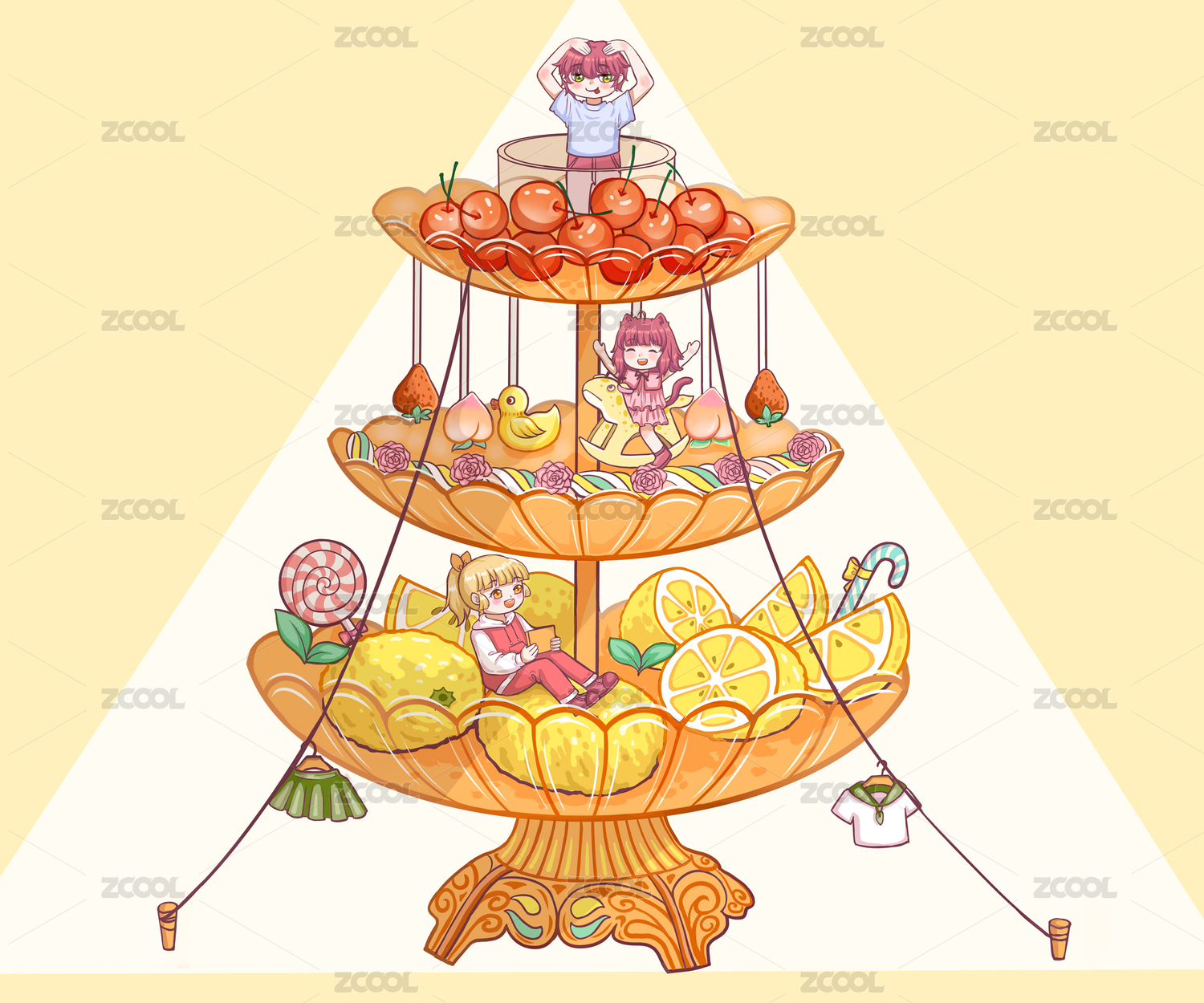 美食卡通小女孩創(chuàng)意水果文創(chuàng)插畫海報(bào)壁紙