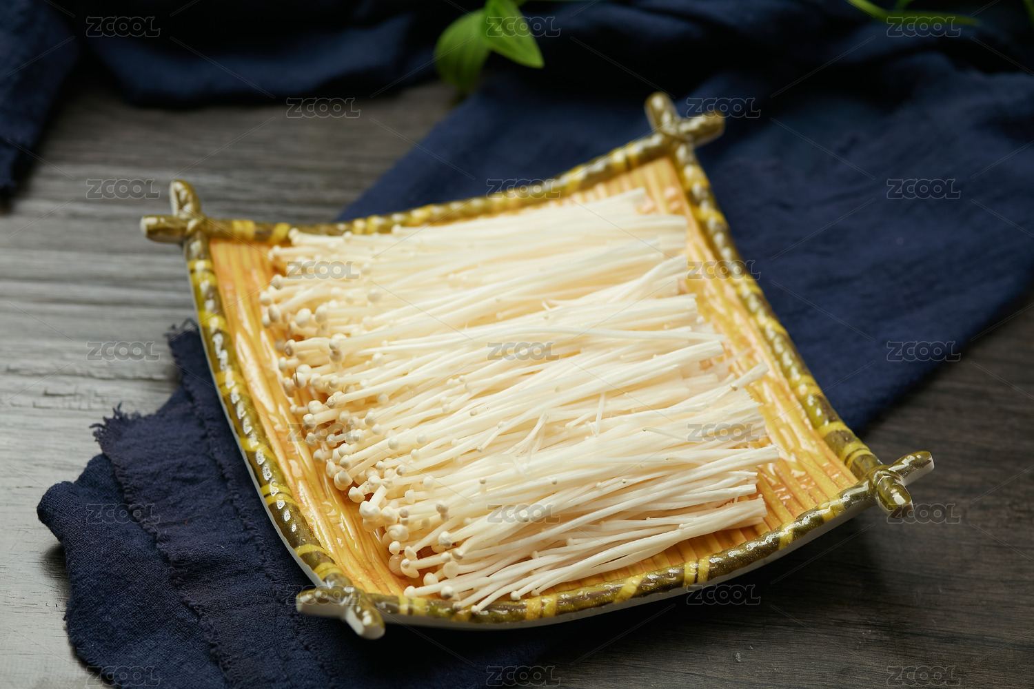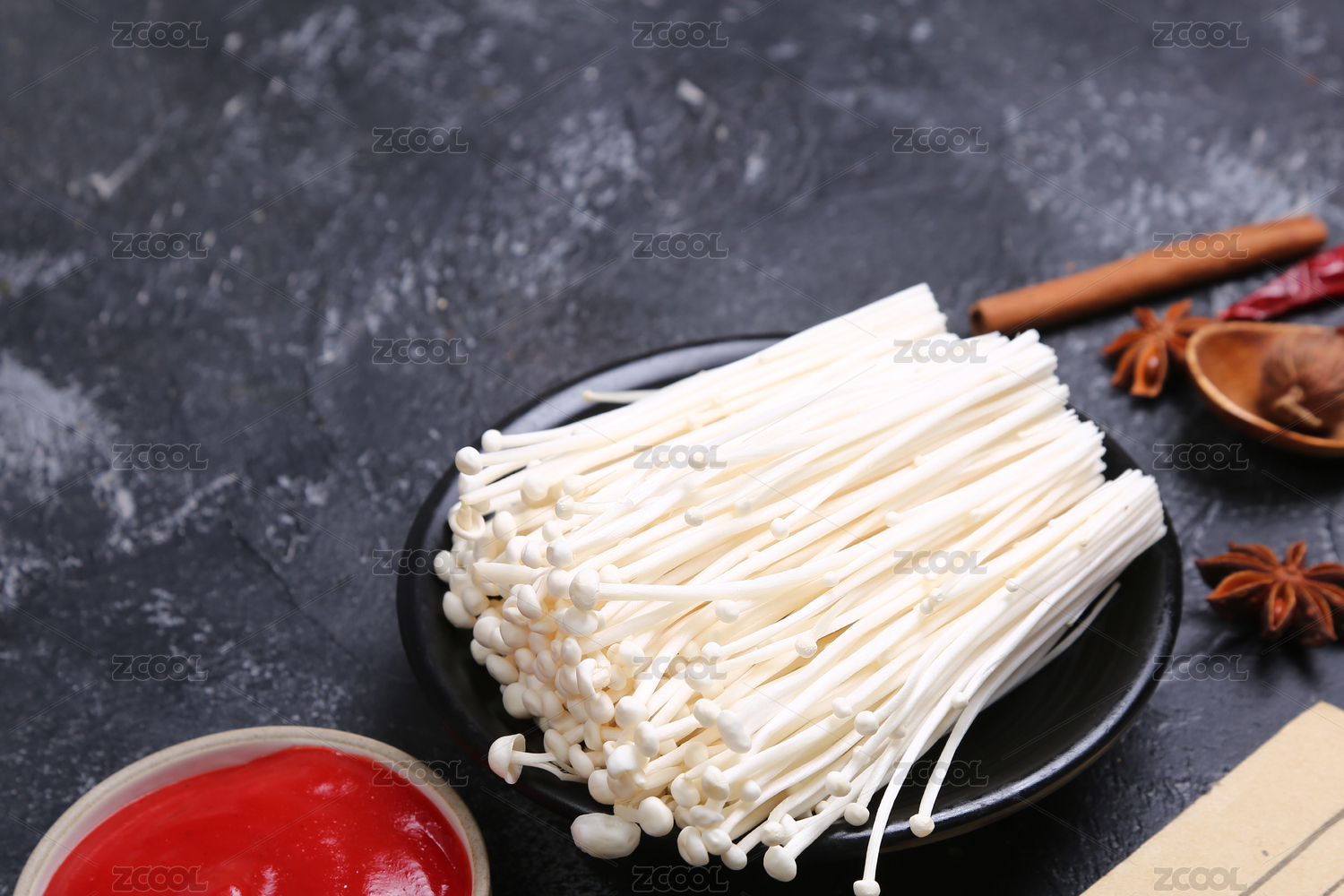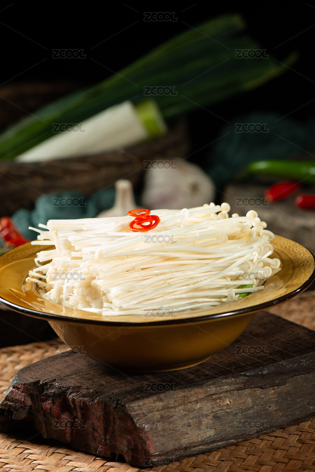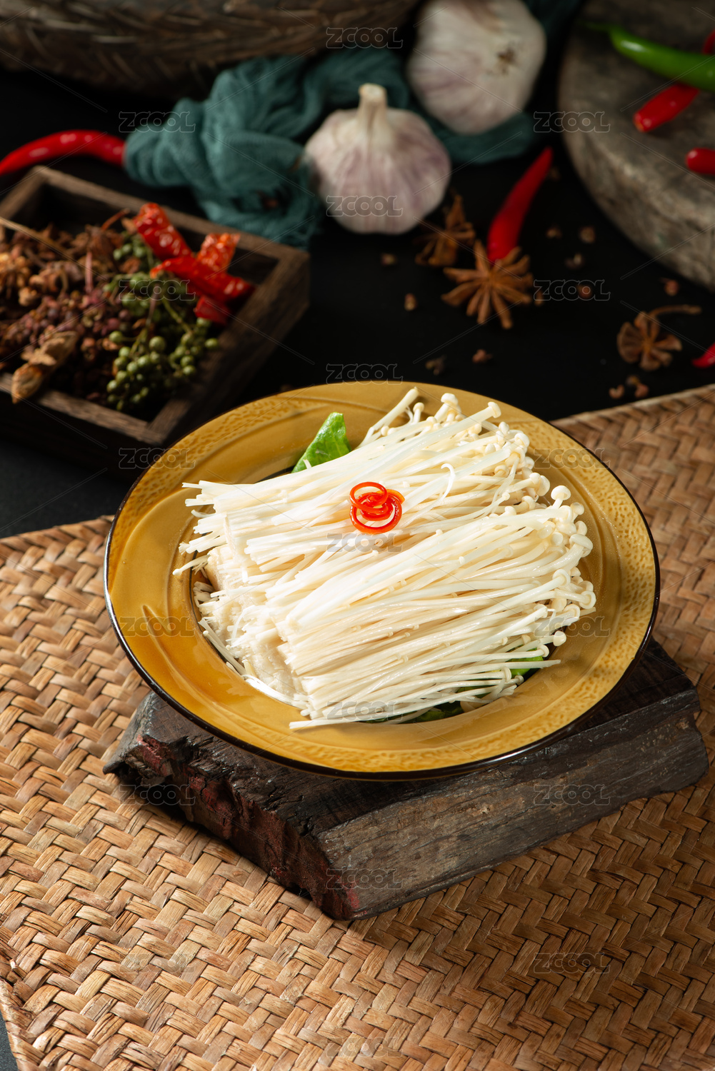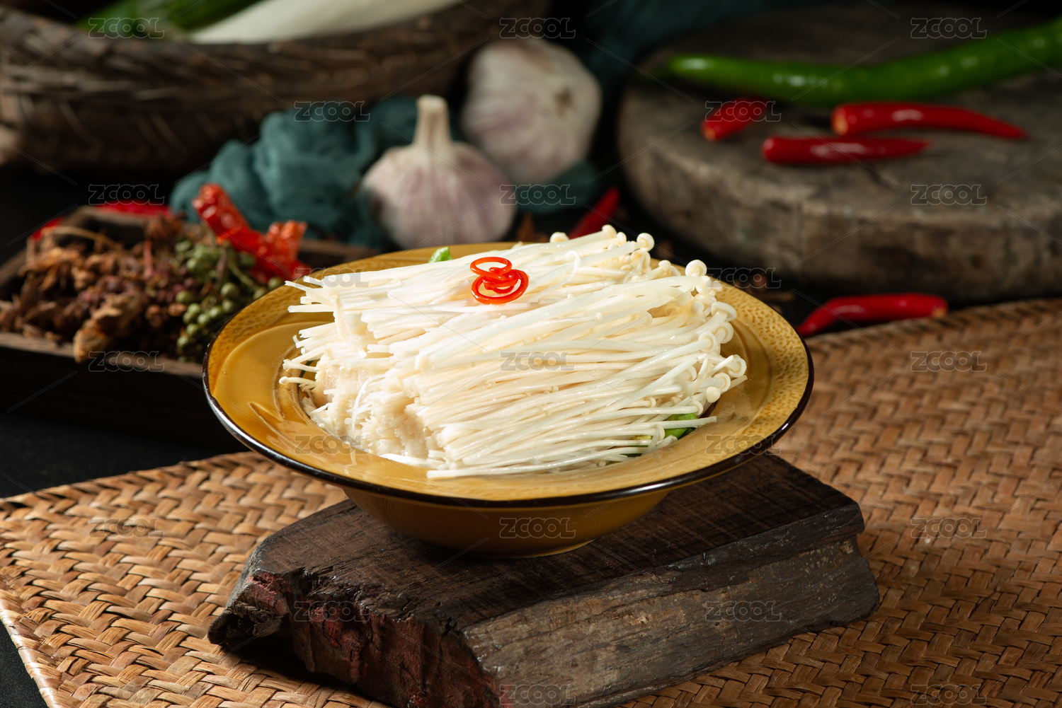 圓碗里的火鍋燒烤菜品新鮮金針菇