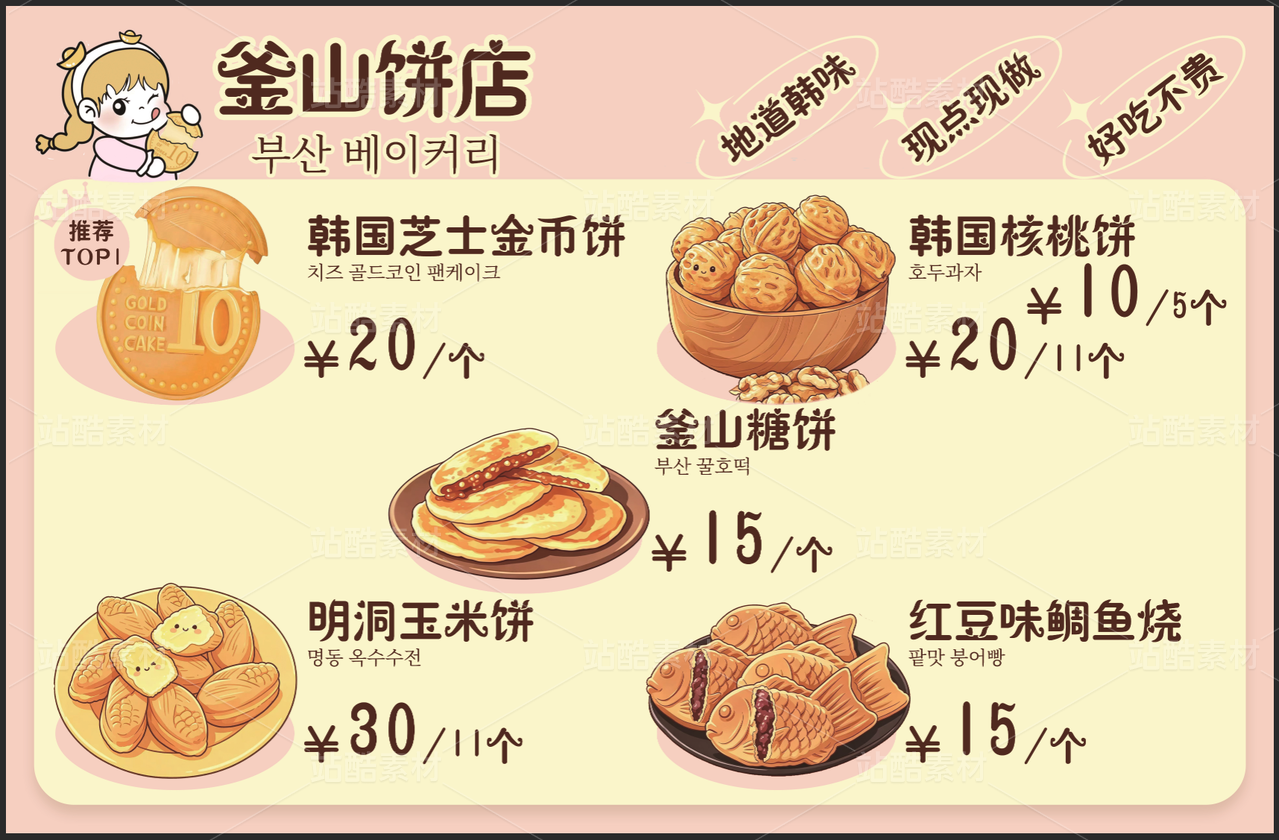 韓式餅 炒年糕 鯛魚燒 韓式熱狗 炸物