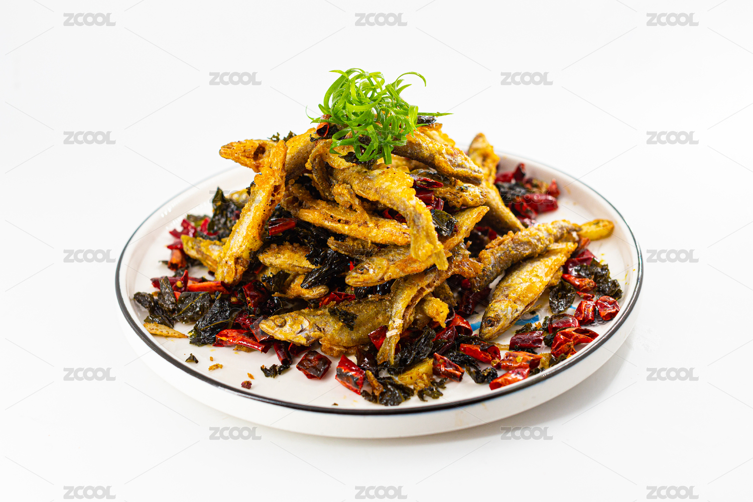 放在盤子里的油炸小黃魚