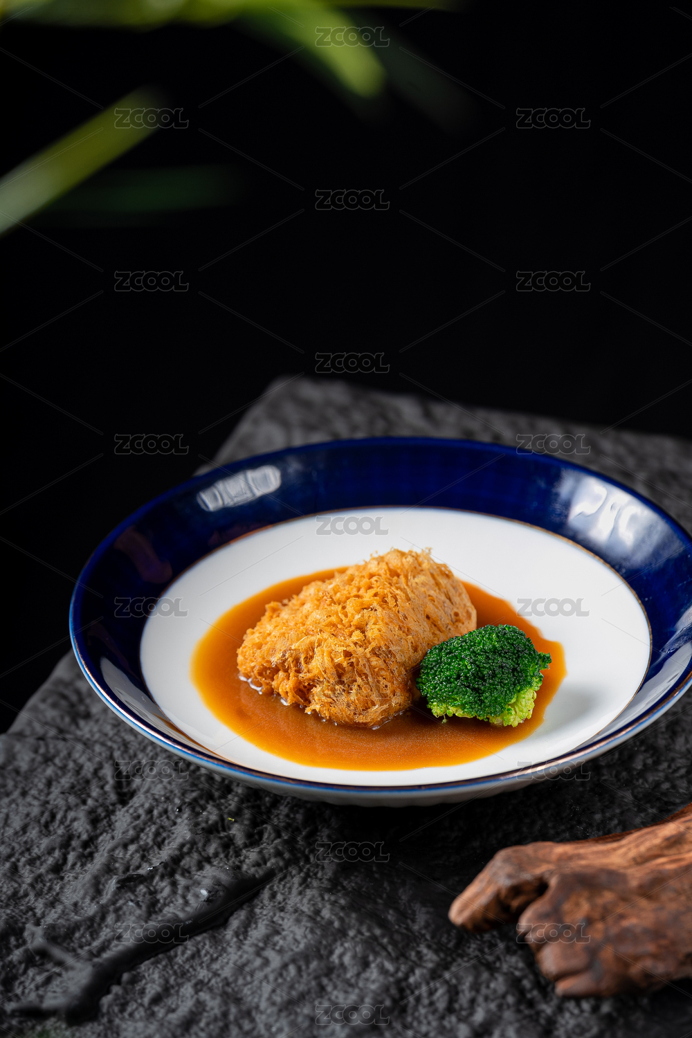 酥脆炸物配棕醬西蘭花