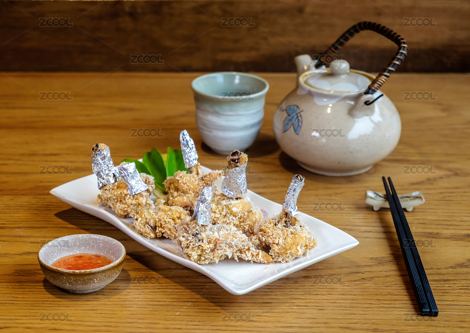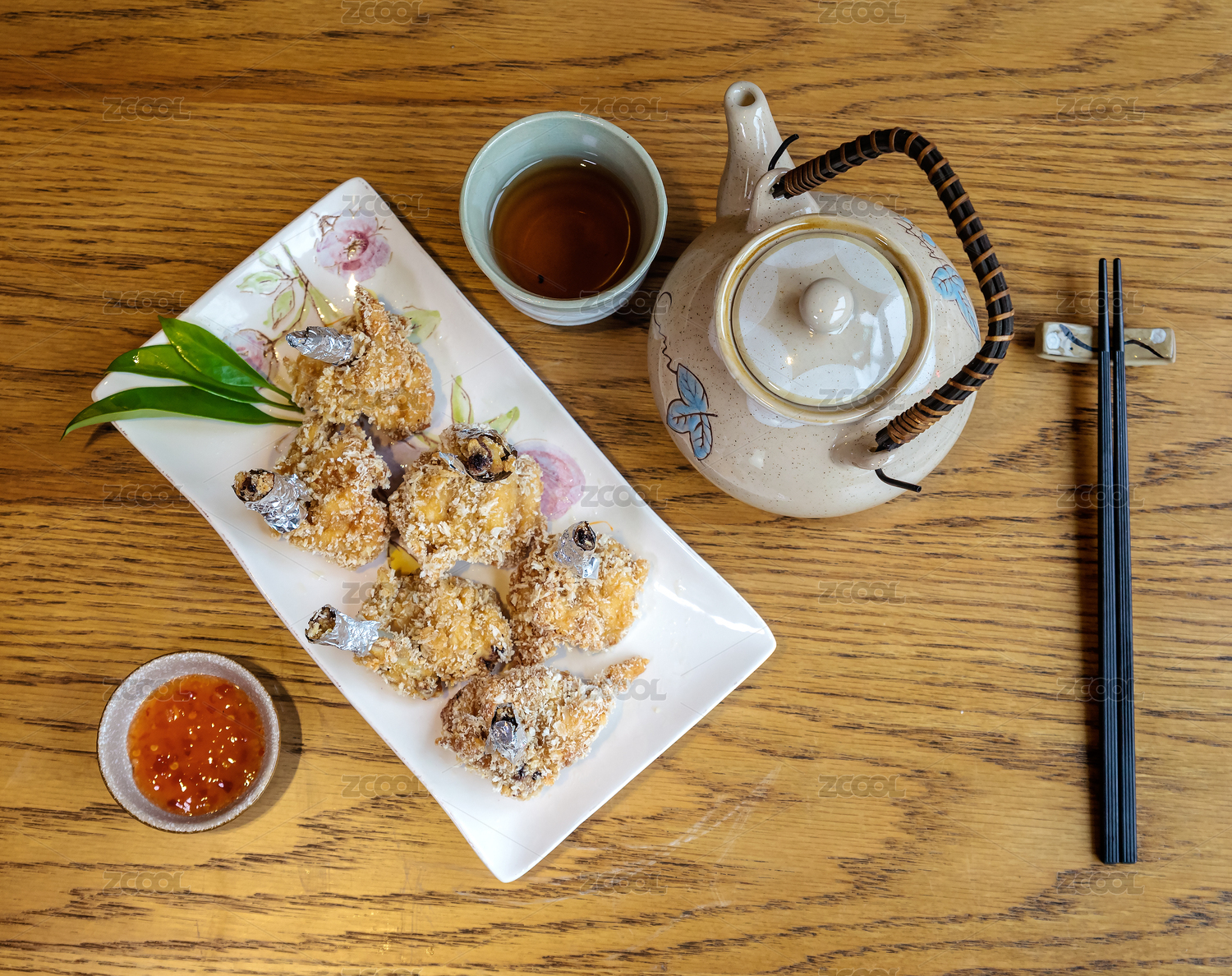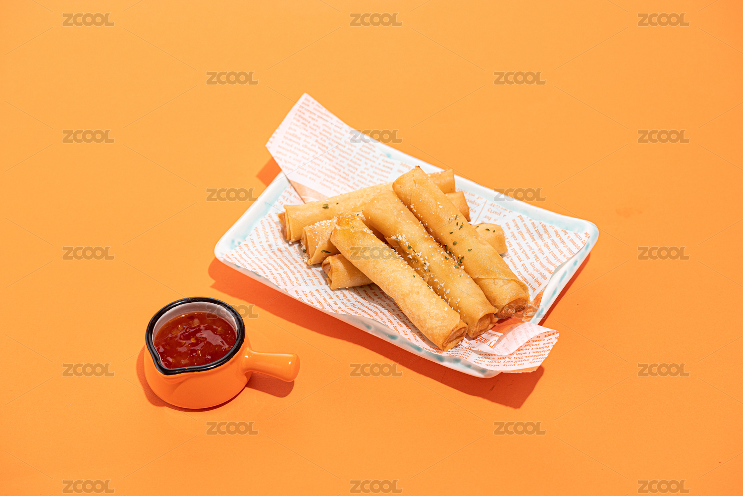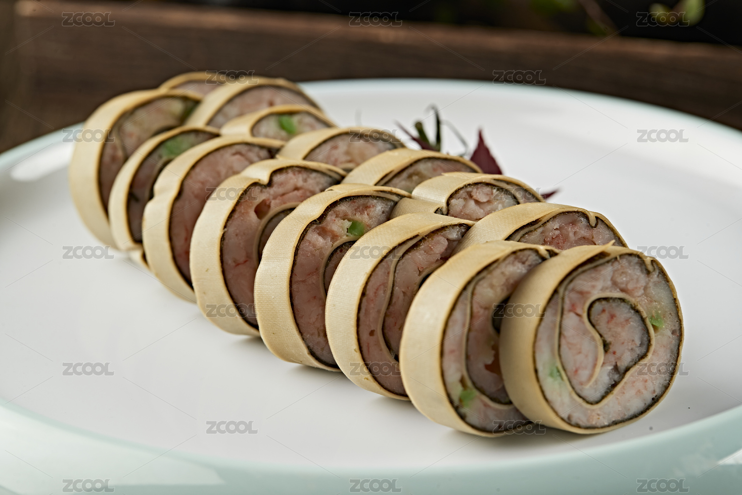 一盤美味的鮮蝦卷美食