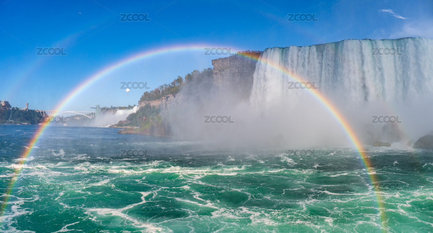 美國加拿大跨國瀑布尼亞加拉瀑布映彩虹