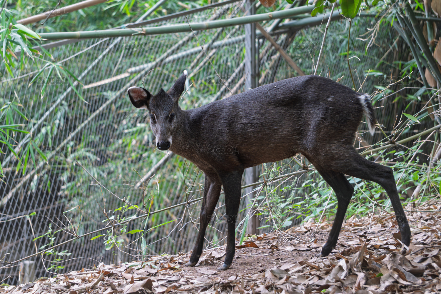 毛冠鹿在冬季張開嘴巴露出紅色的舌頭