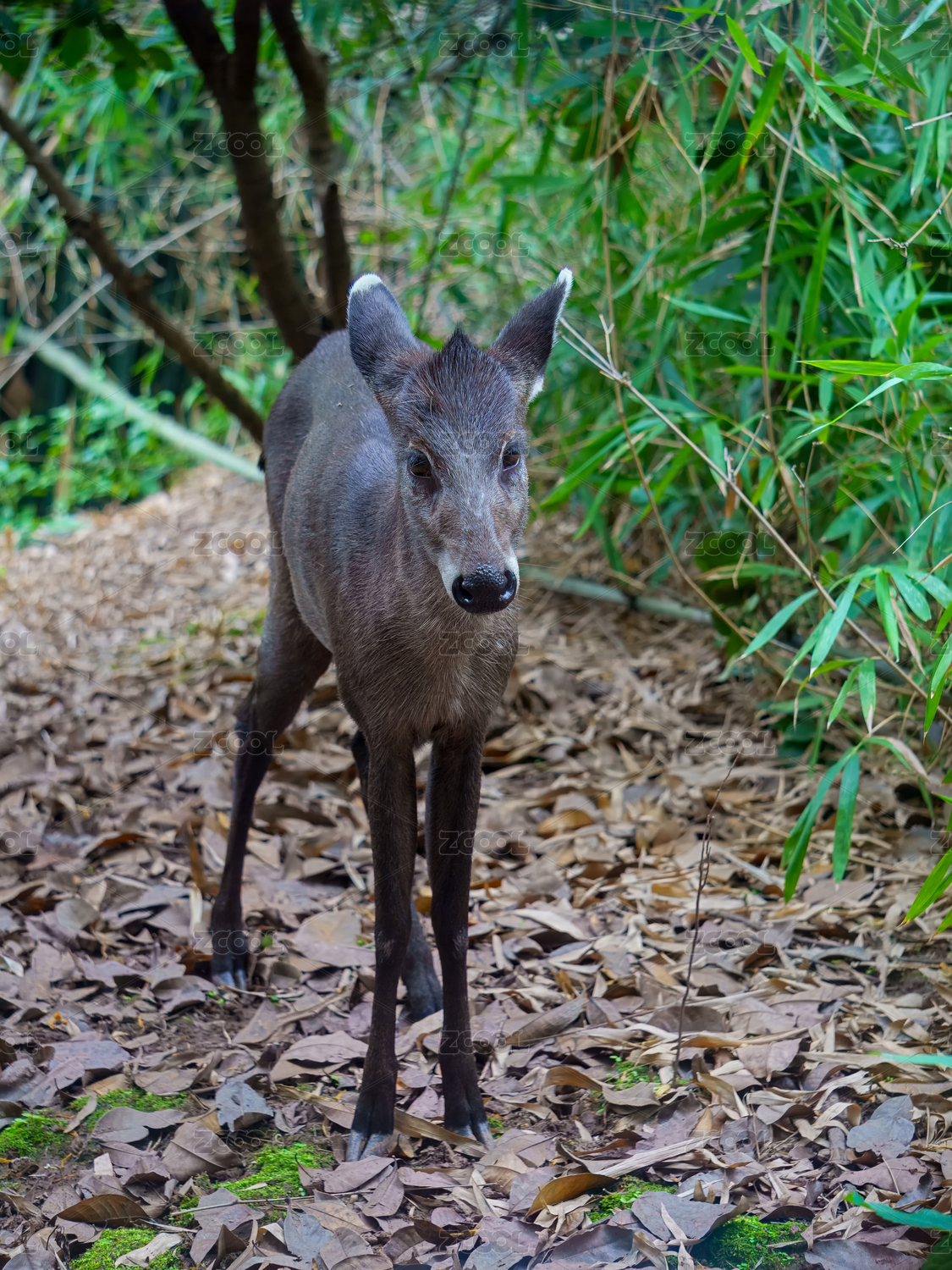 雌性毛冠鹿裂開嘴巴的頭部特寫