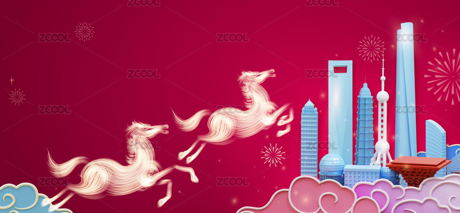 馬年中國上海城市春節(jié)慶典宣傳海報創(chuàng)意設計