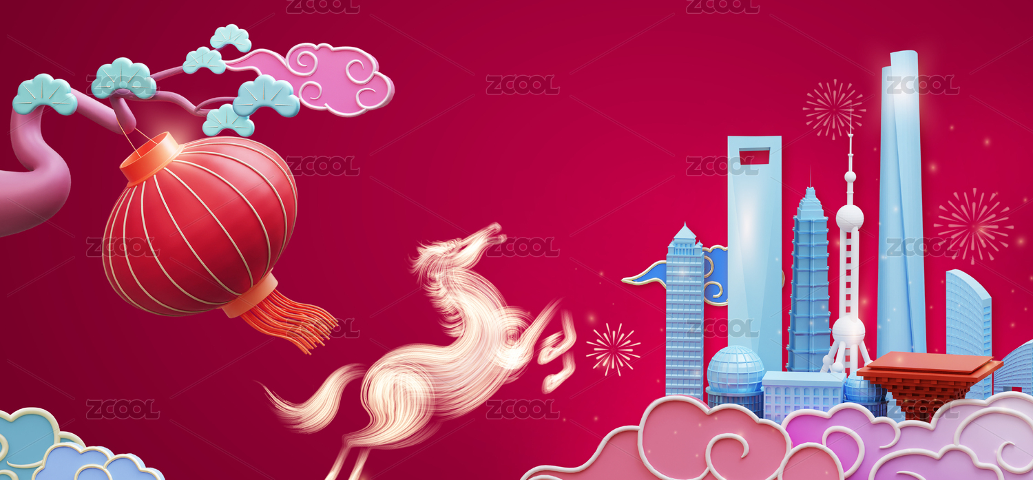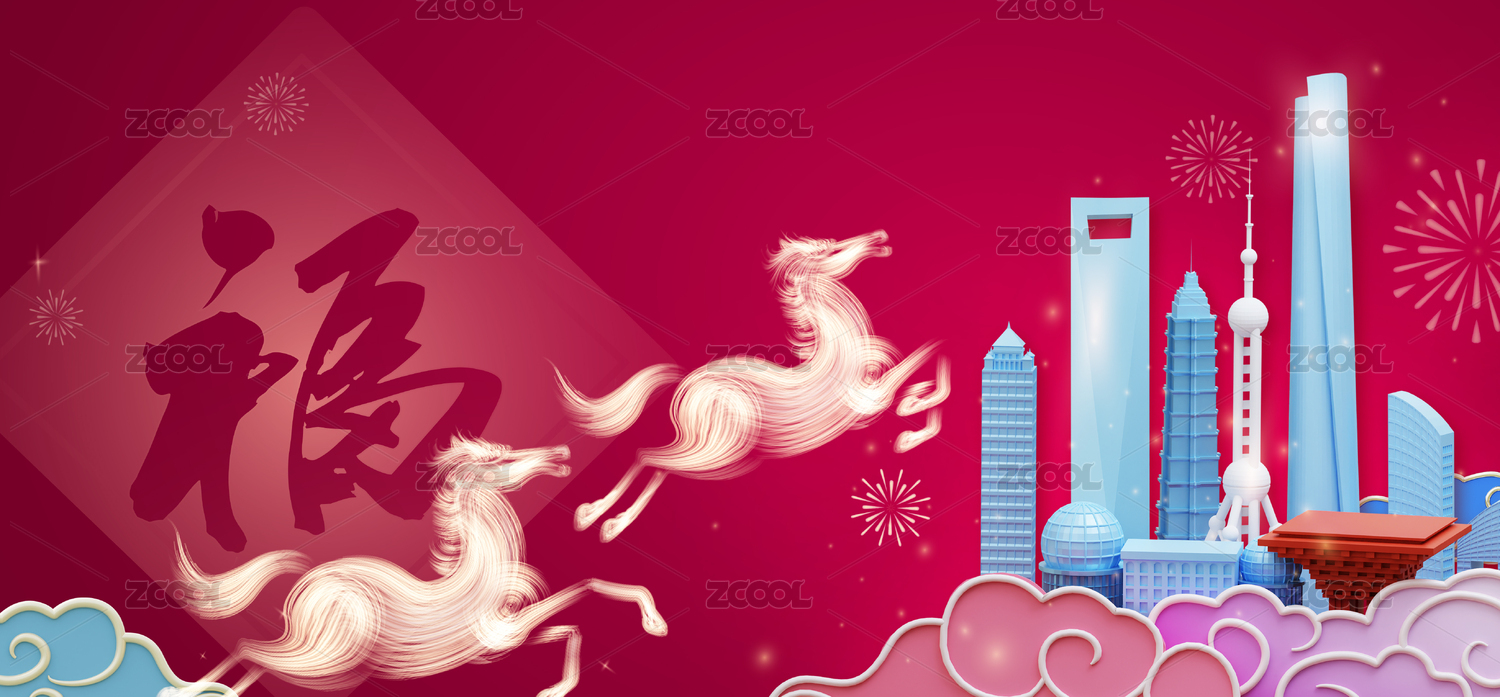 馬年中國上海城市春節(jié)慶典節(jié)日宣傳海報創(chuàng)意