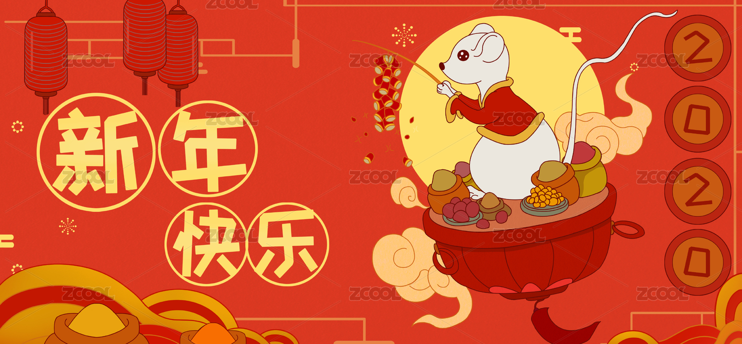 鼠年春節(jié)節(jié)慶日插畫宣傳圖