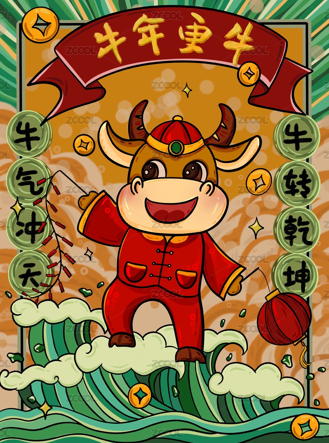國潮手寫牛年插畫