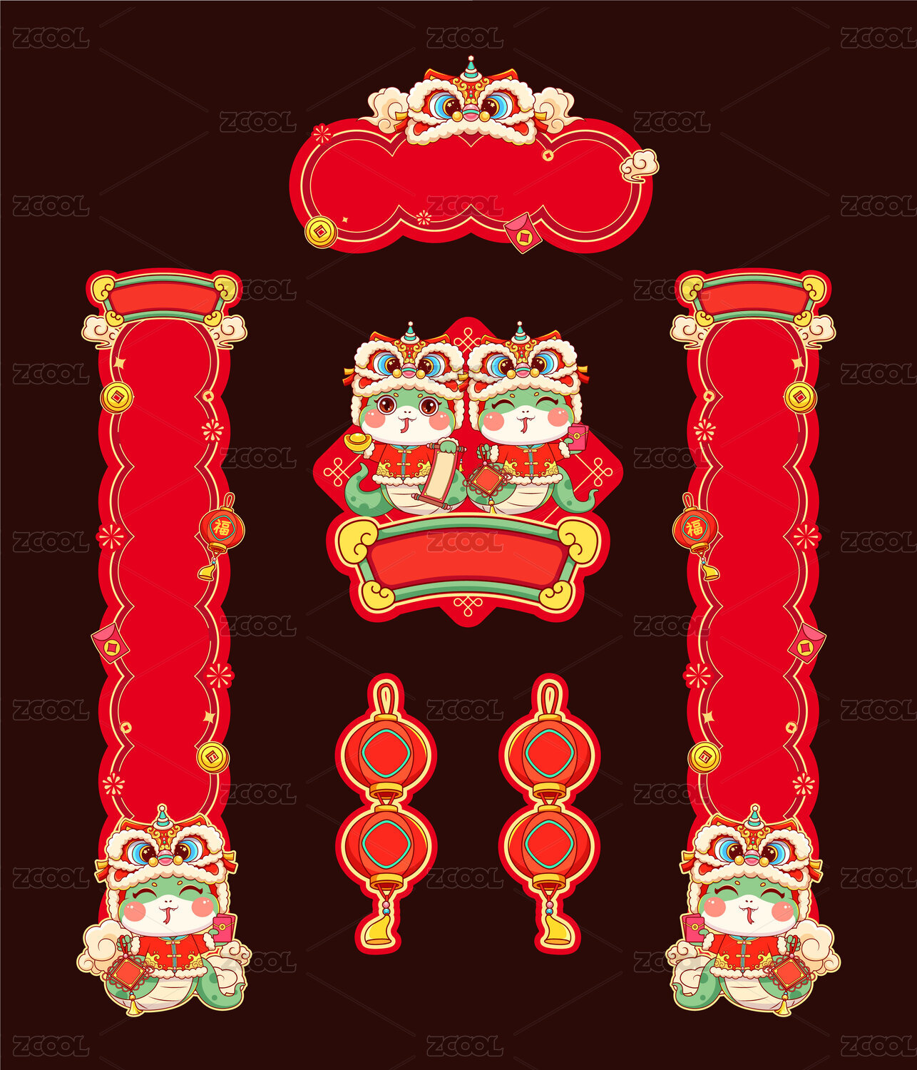2025蛇年春節(jié)喜慶對聯(lián)設計模板