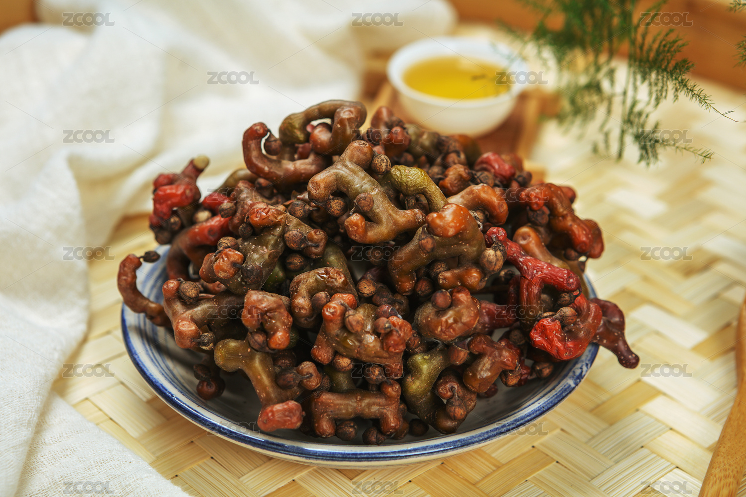白底上放著一筐萬壽果
