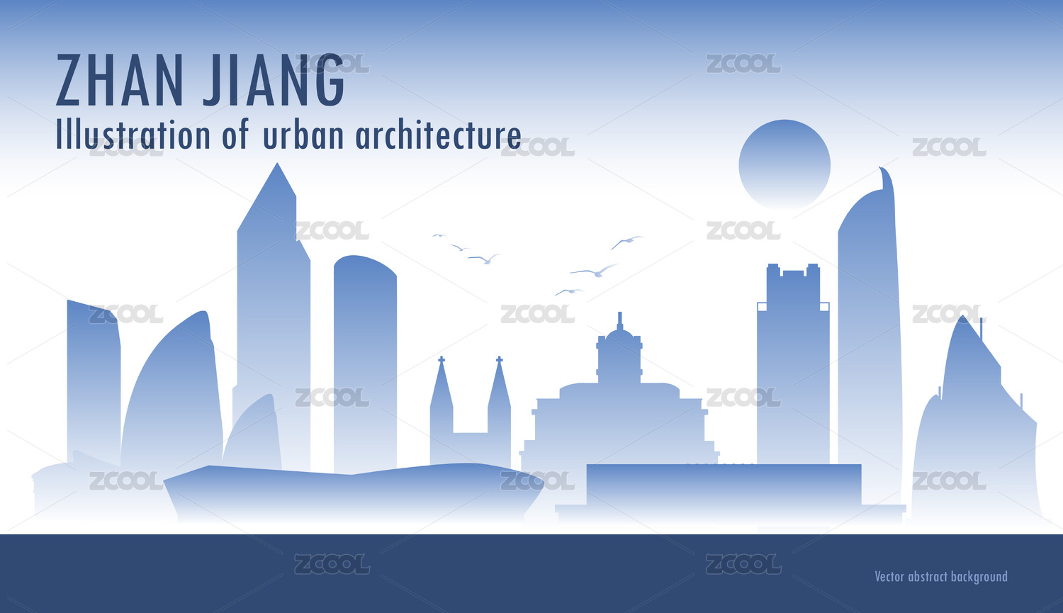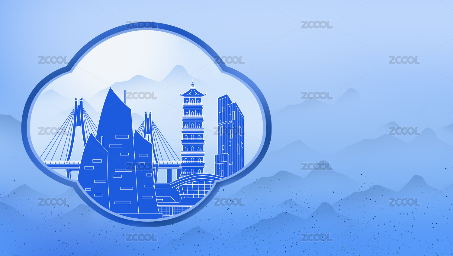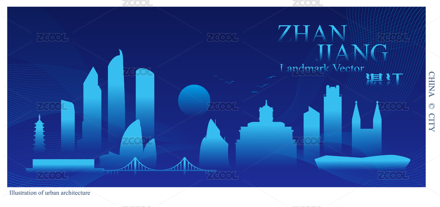 湛江山水畫中國風城市復古打卡地標旅游建筑