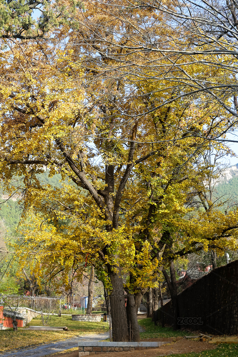 山東省濟(jì)南市靈巖寺里秋季的銀杏樹(shù)