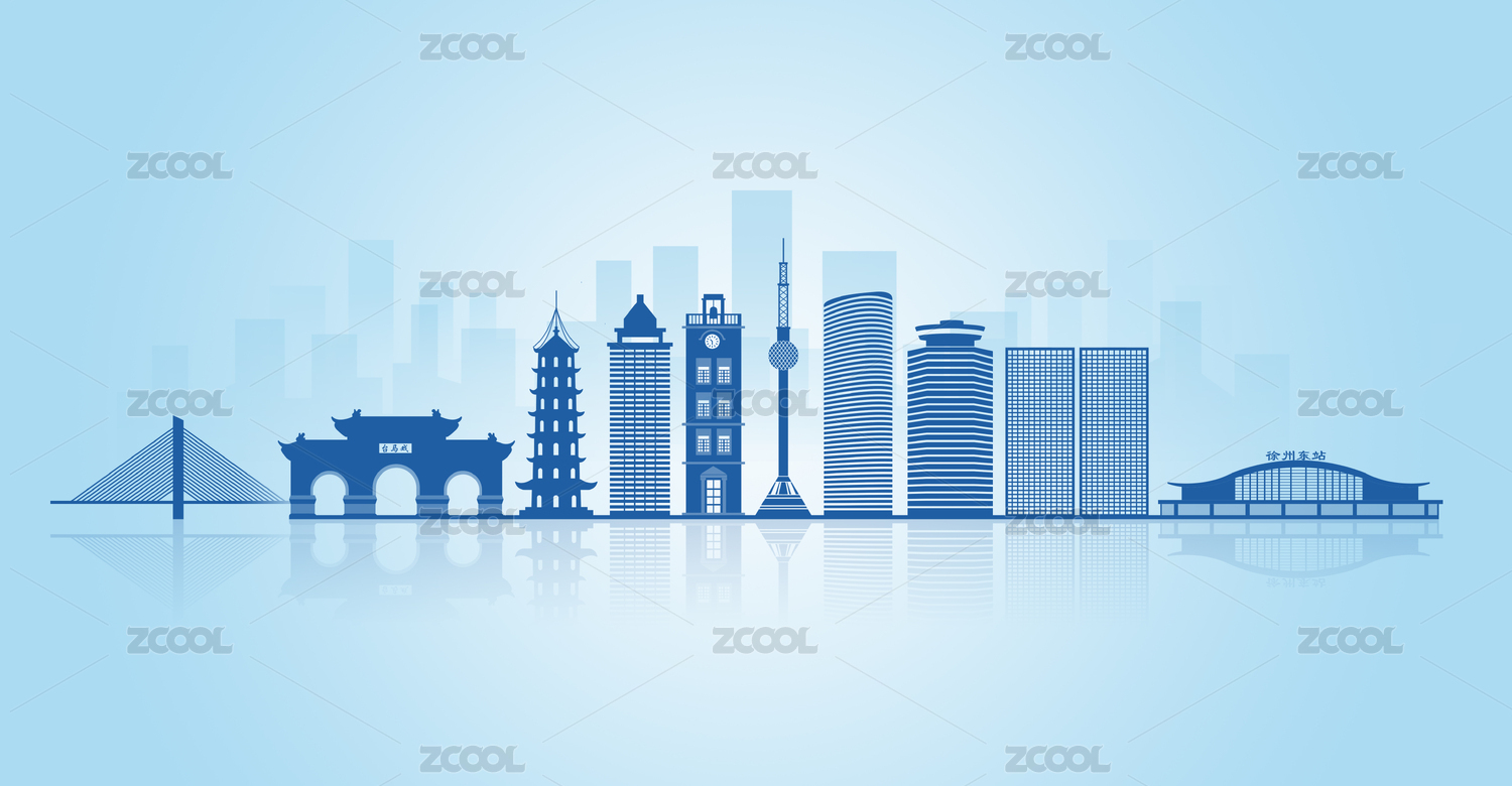 中國江蘇省徐州市地標(biāo)建筑剪影天際線會議背景