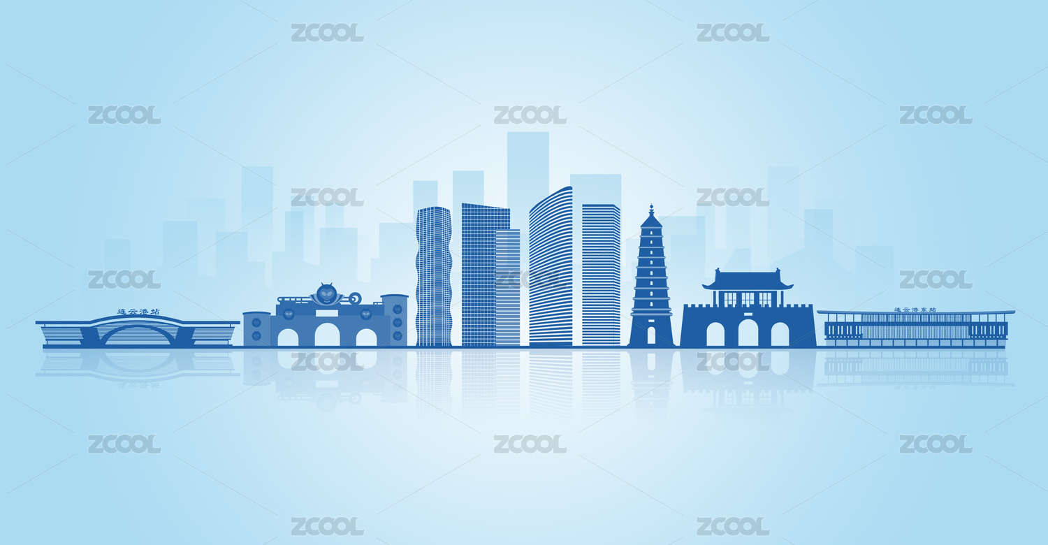 中國江蘇省連云港市地標(biāo)建筑剪影城市會議背景