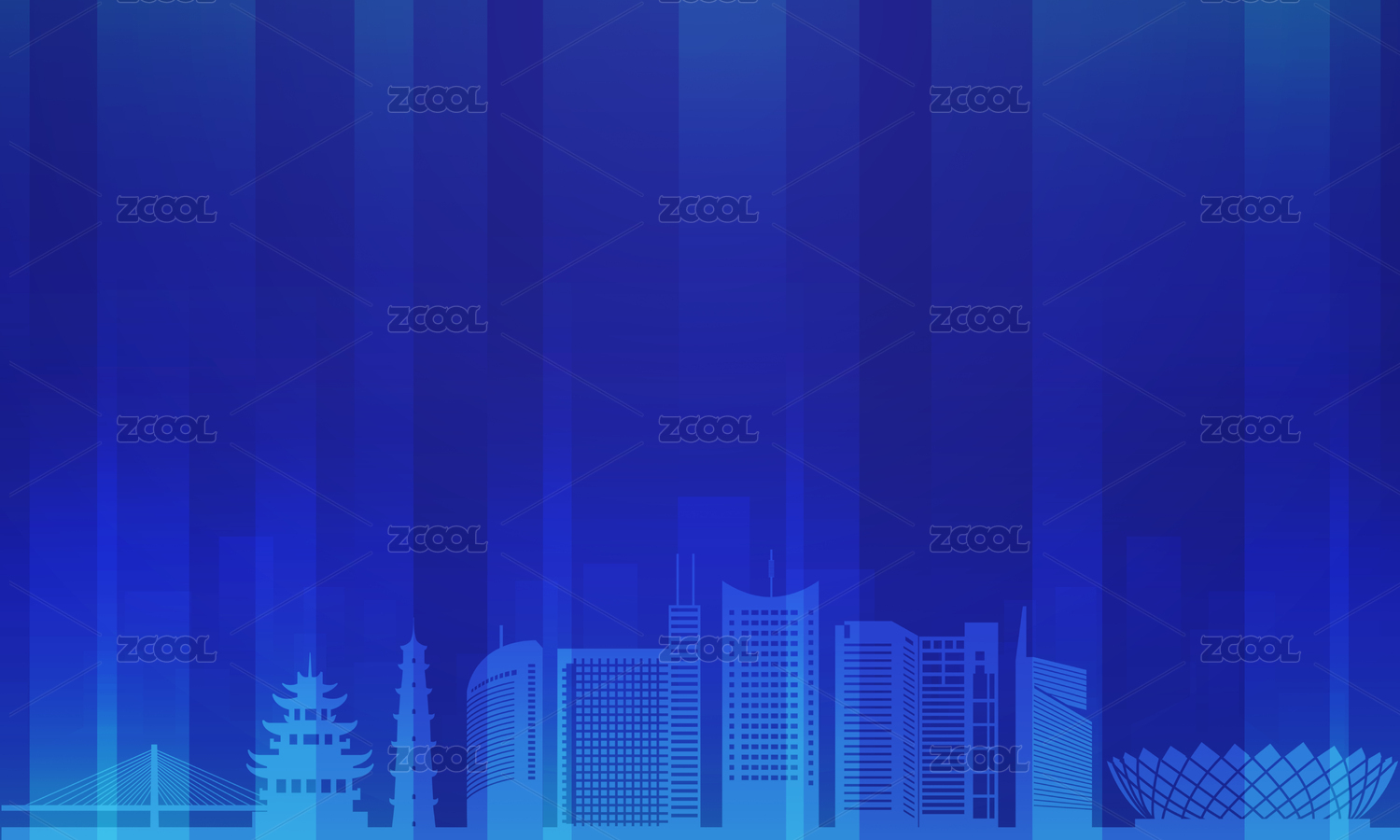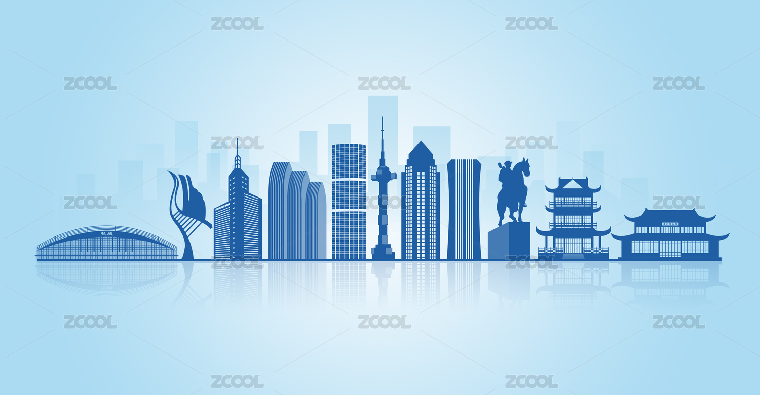 中國浙江省湖州市地標(biāo)建筑剪影藍(lán)色會議背景